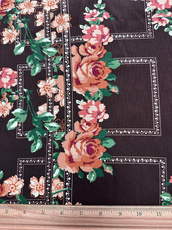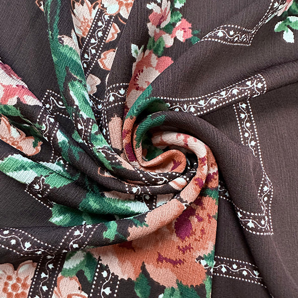 Brown Multi Trellis Poly Print High Crepe Fabric