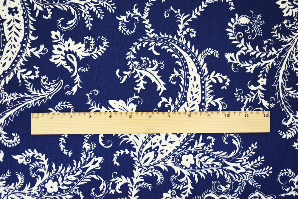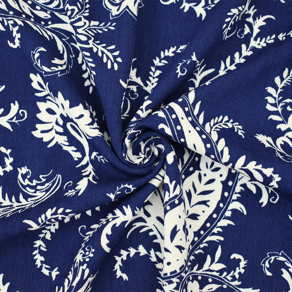Deep Blue-White Paisley Printed Poly Slub Momie Crepe Woven Fabric