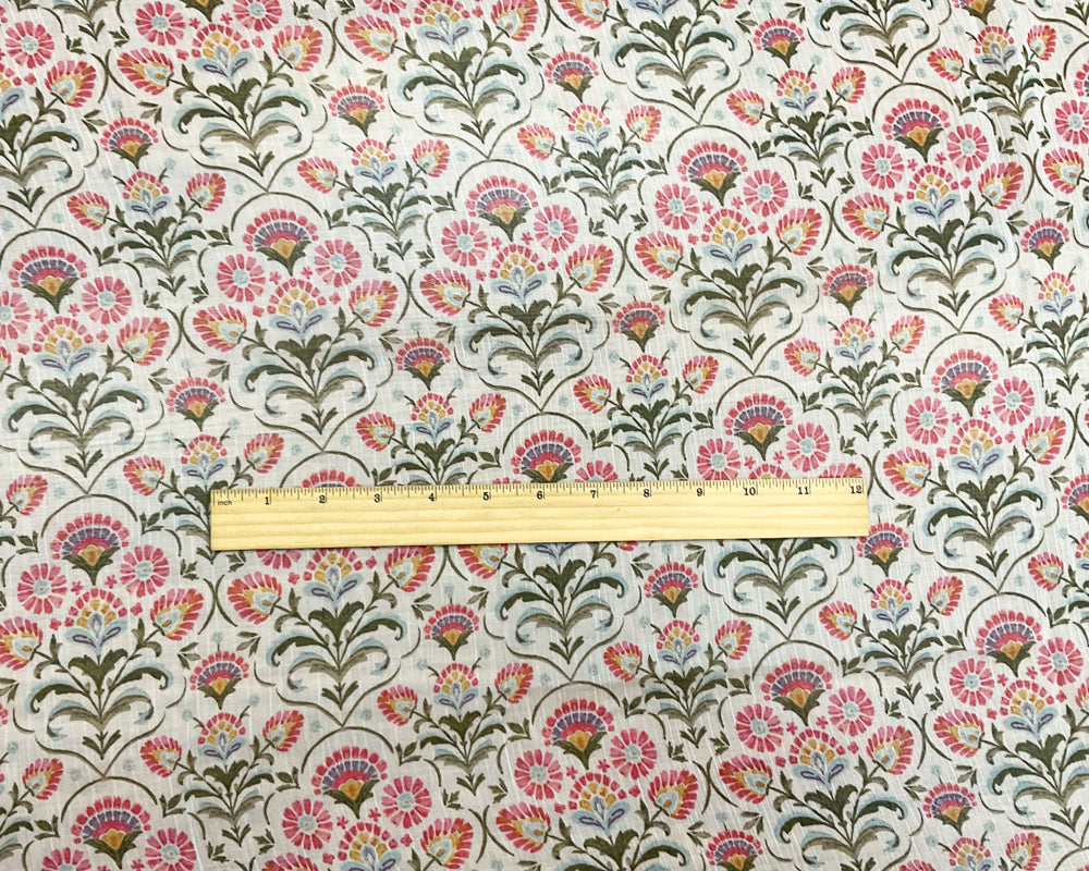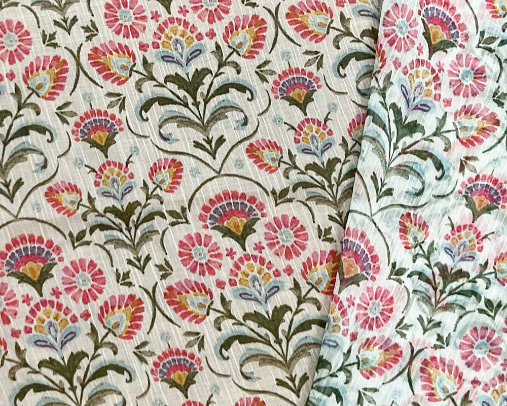 White-Green-Multi Poly Floral Printed Crinkle Yoryu Chiffon Woven Fabric