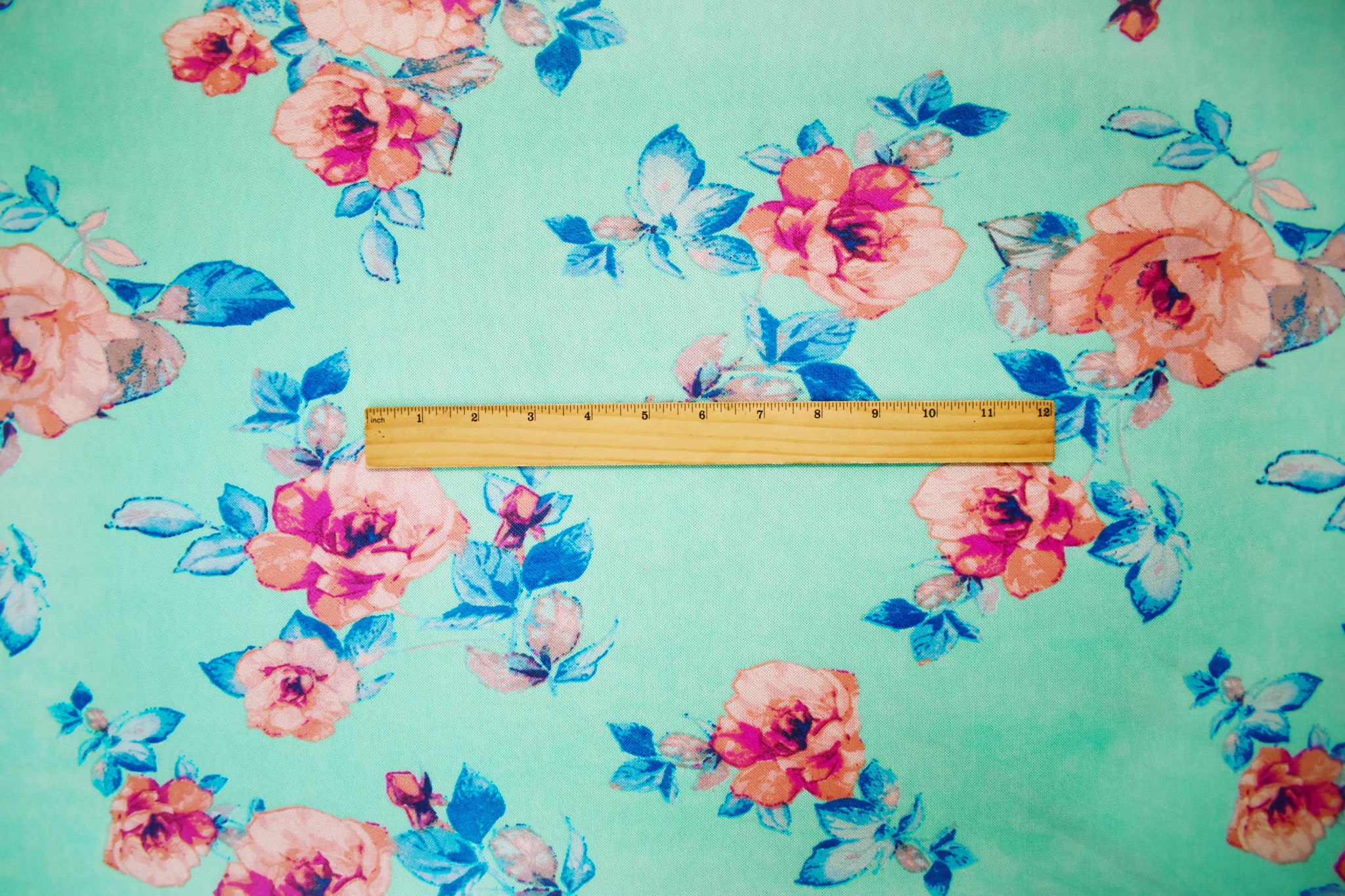 Aqua Teal-Multi Poly Stretch Spandex Floral Printed Mesh Knit Fabric