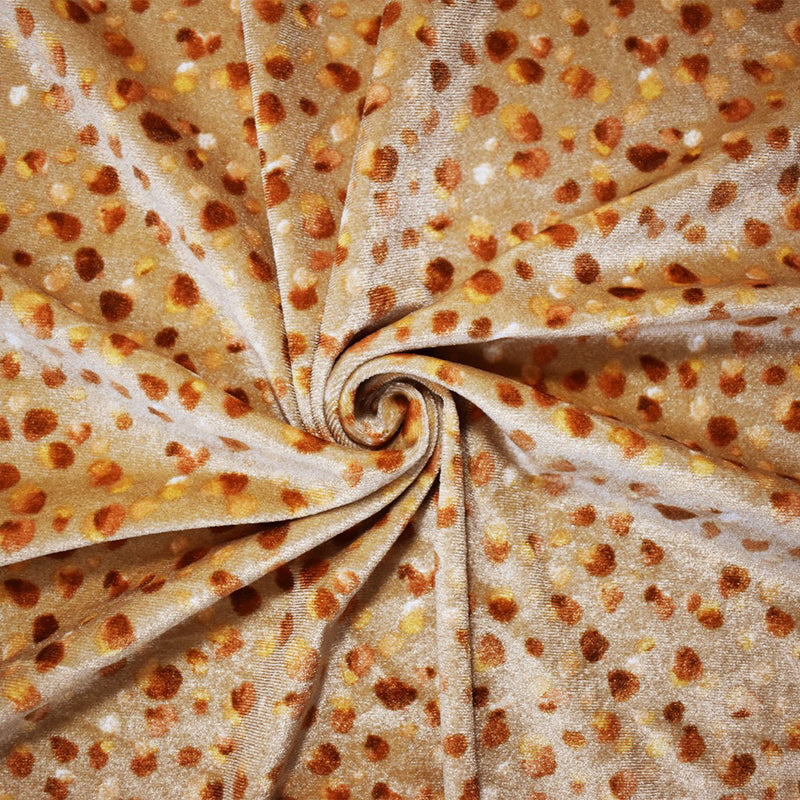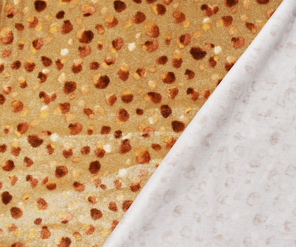 Beige-Brown Poly Stretch Abstract Printed Velvet Knit Fabric