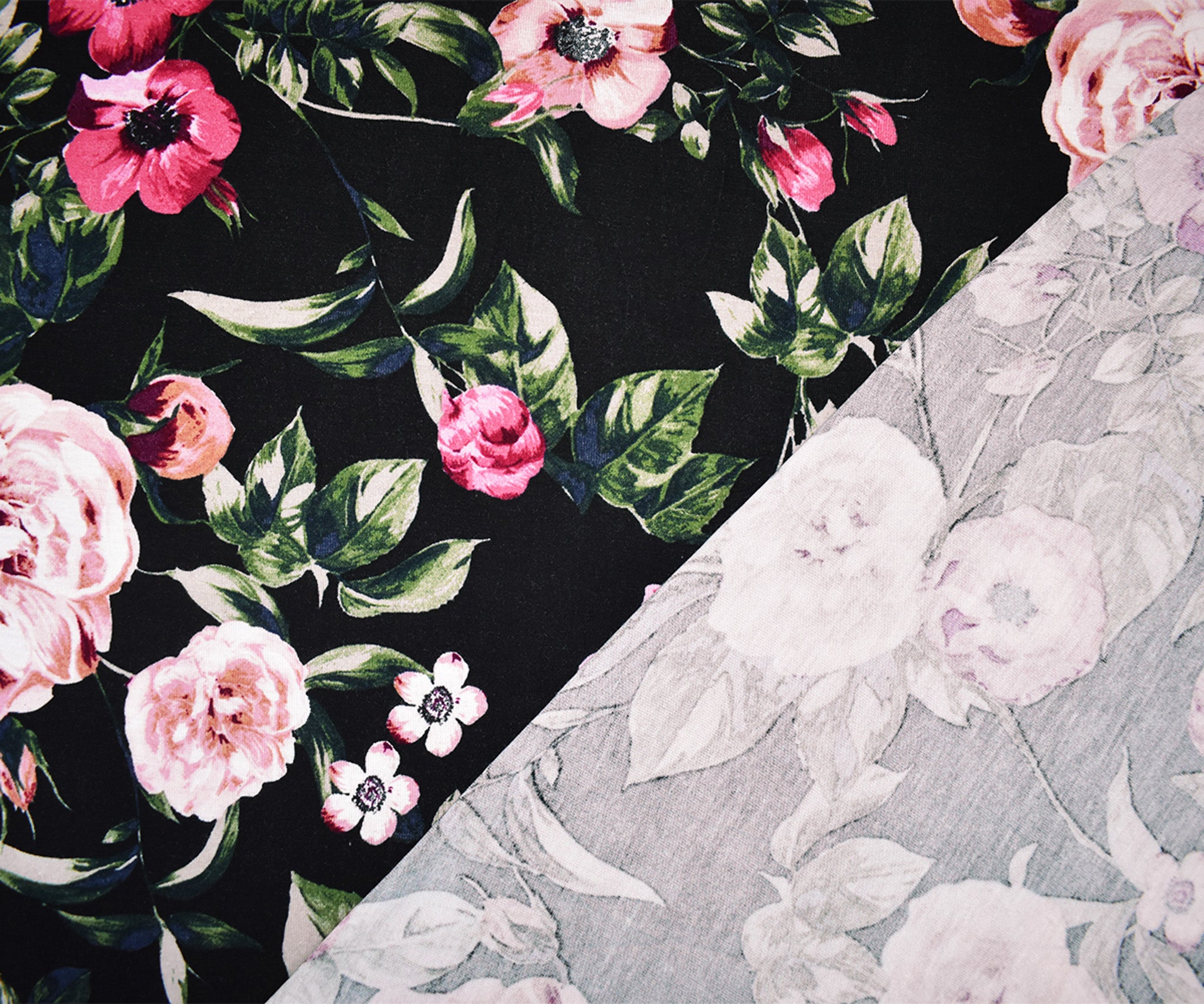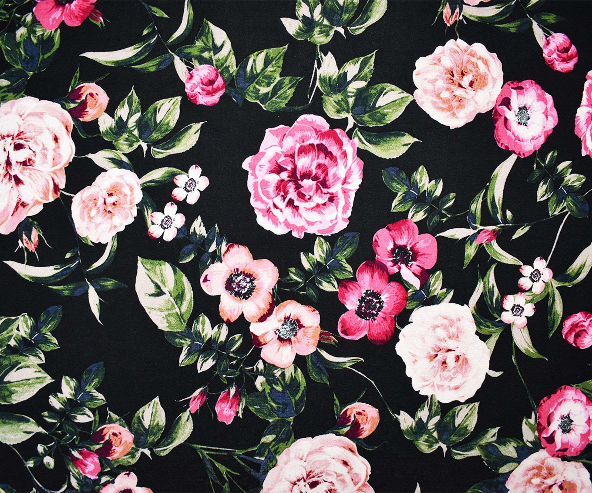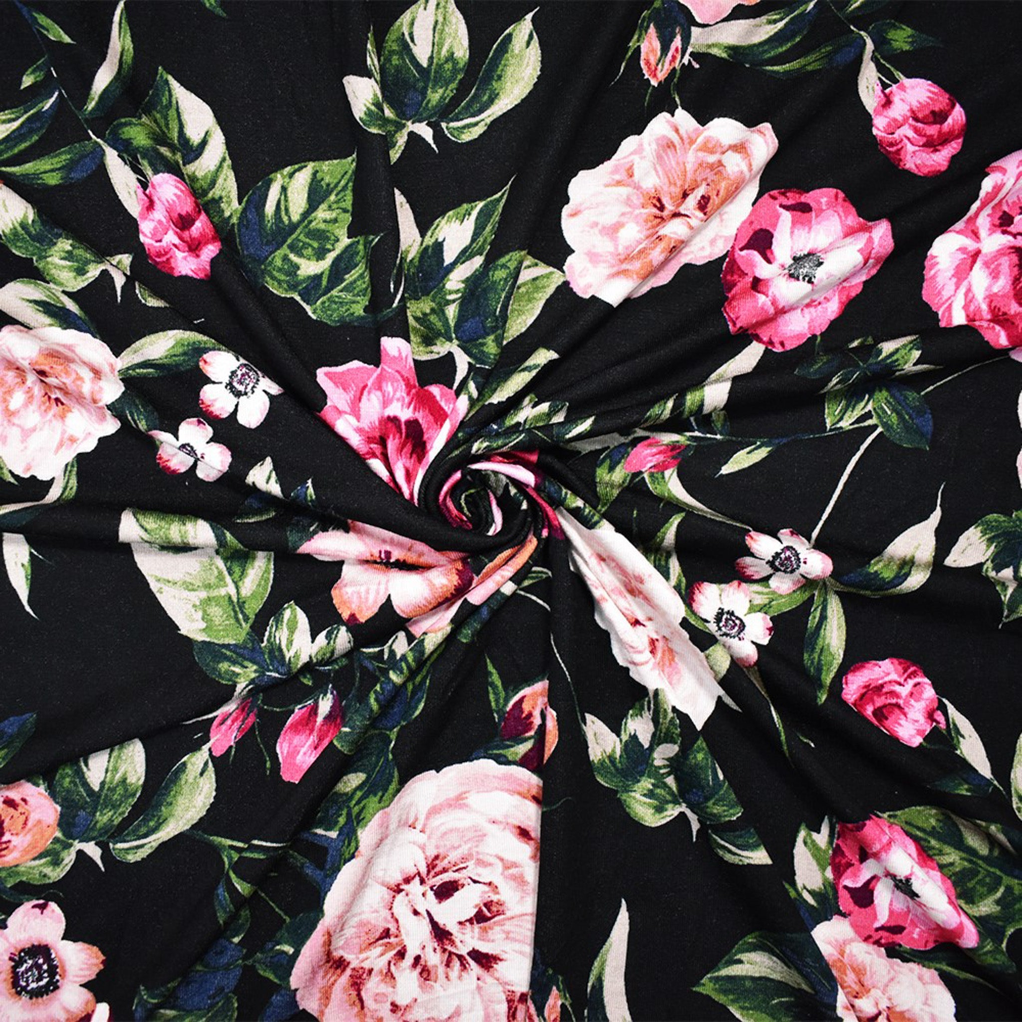 Black-Multi Rayon Stretch Spandex Floral Print Jersey Knit Fabric