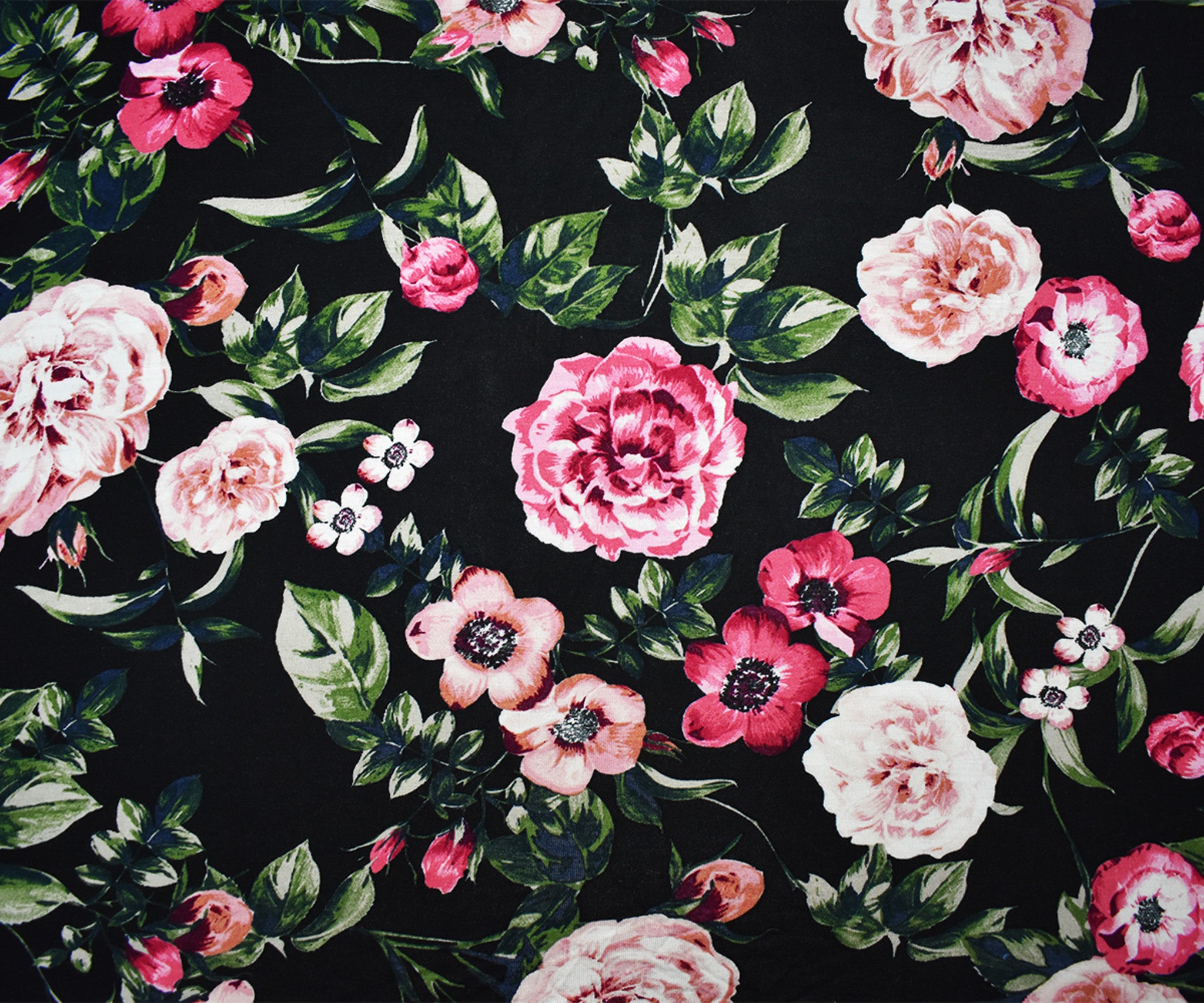 Black-Multi Rayon Stretch Spandex Floral Printed Jersey Knit Fabric