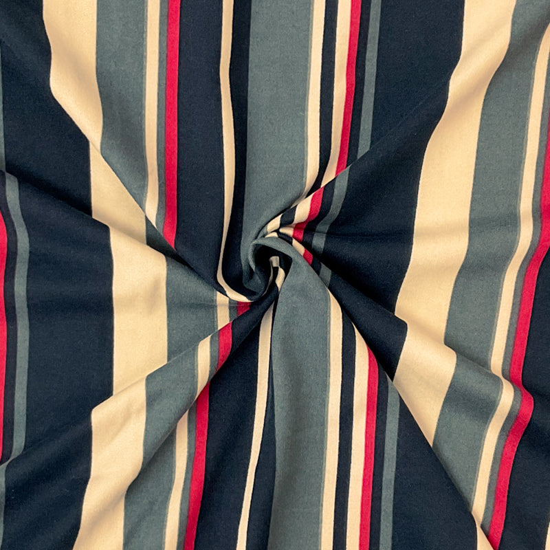 Black Poly Stretch Vertical Stripe Print DB Jersey Knit Fabric