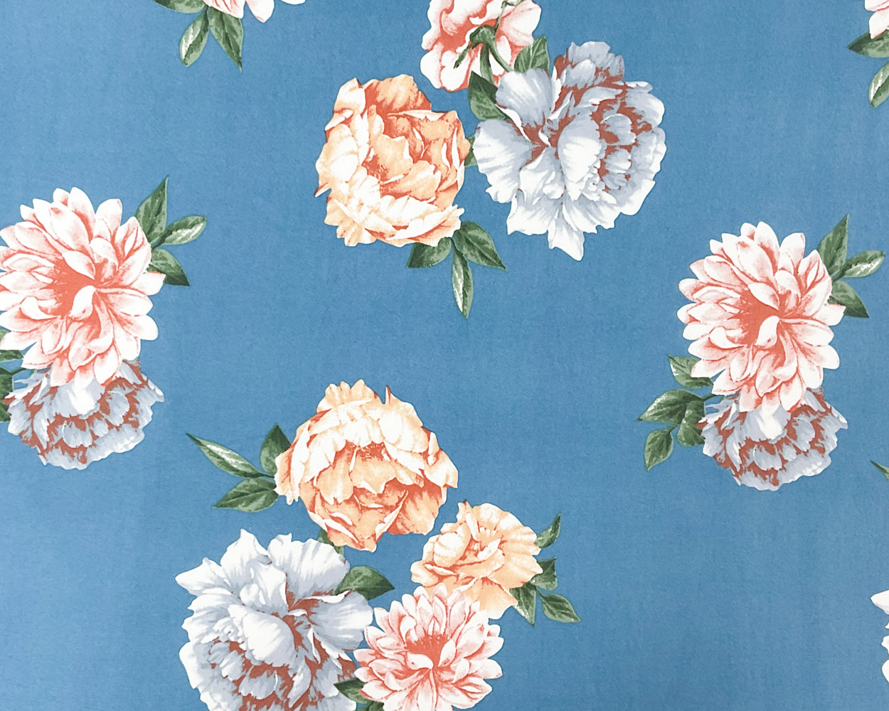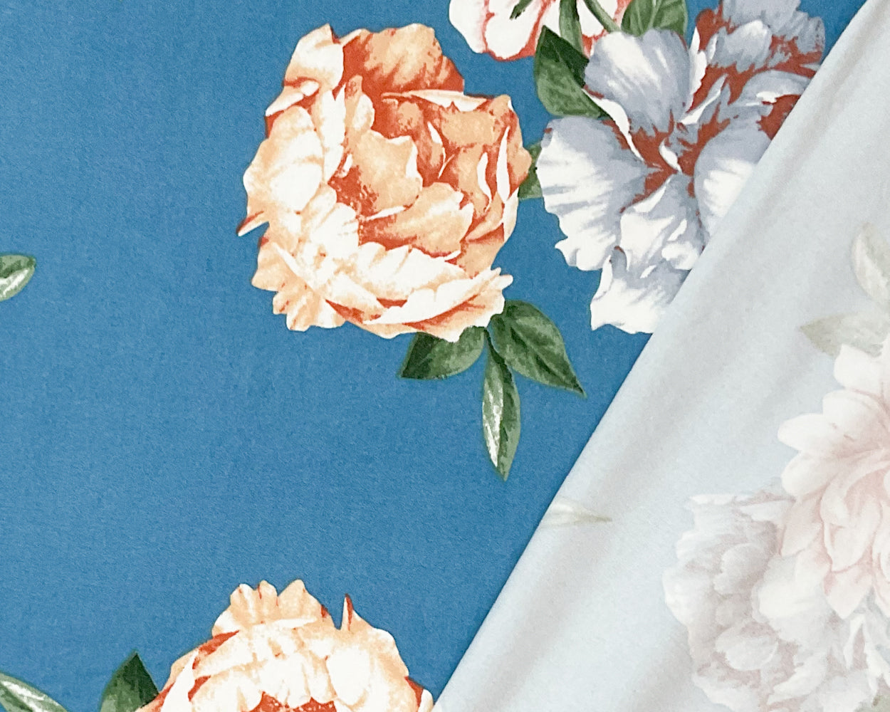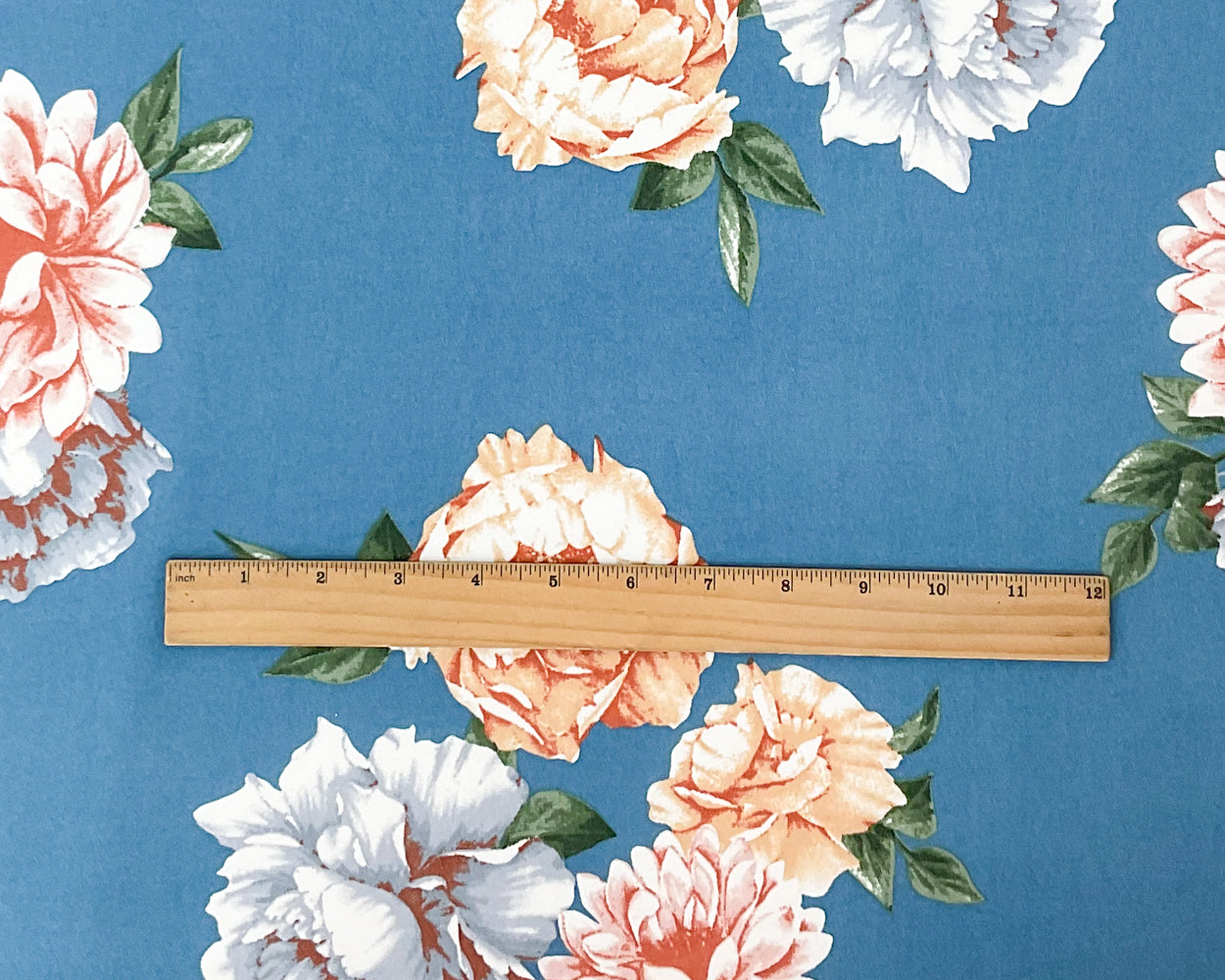 Blue-Multi Poly Spandex Stretch Floral Print DB Jersey Knit Fabric