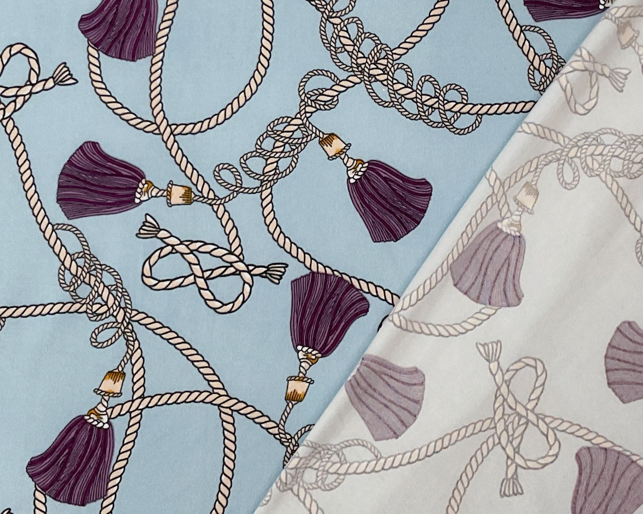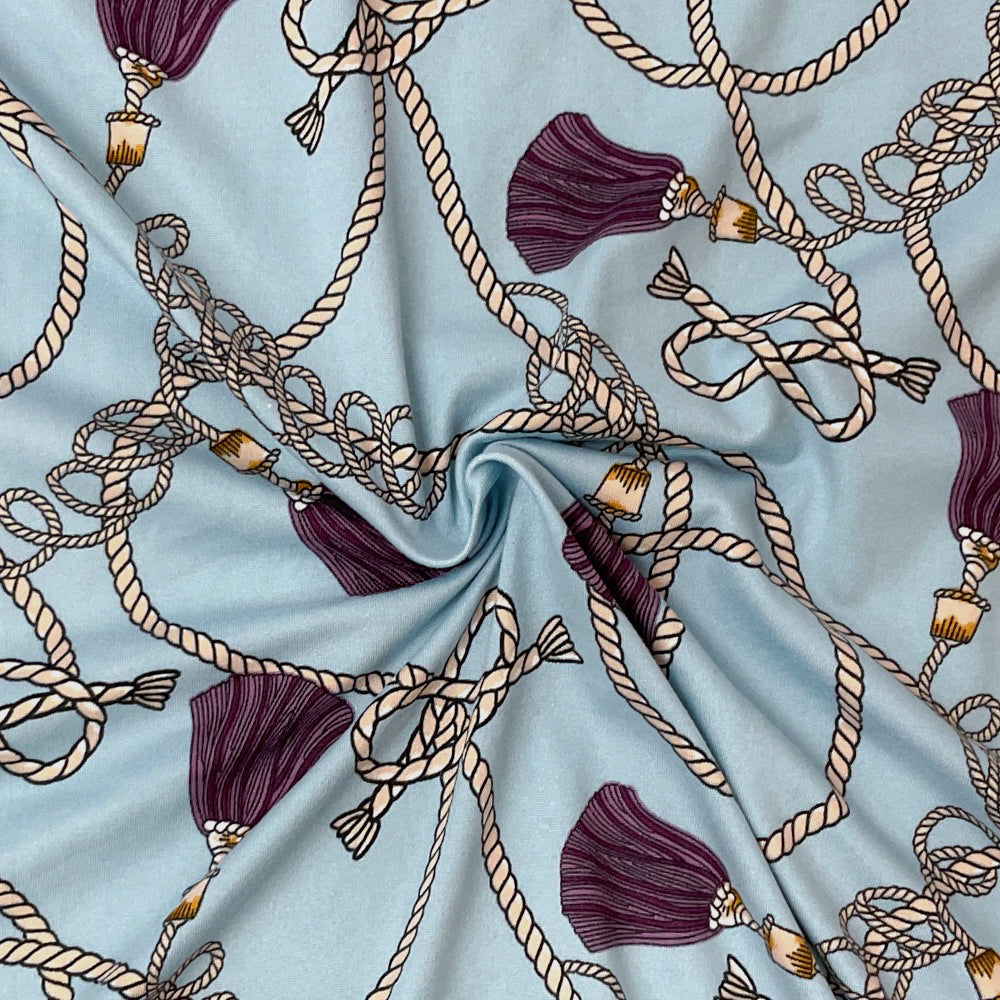 Blue-Multi Poly Spandex Stretch Rope Tassel Print DB Jersey Knit Fabric