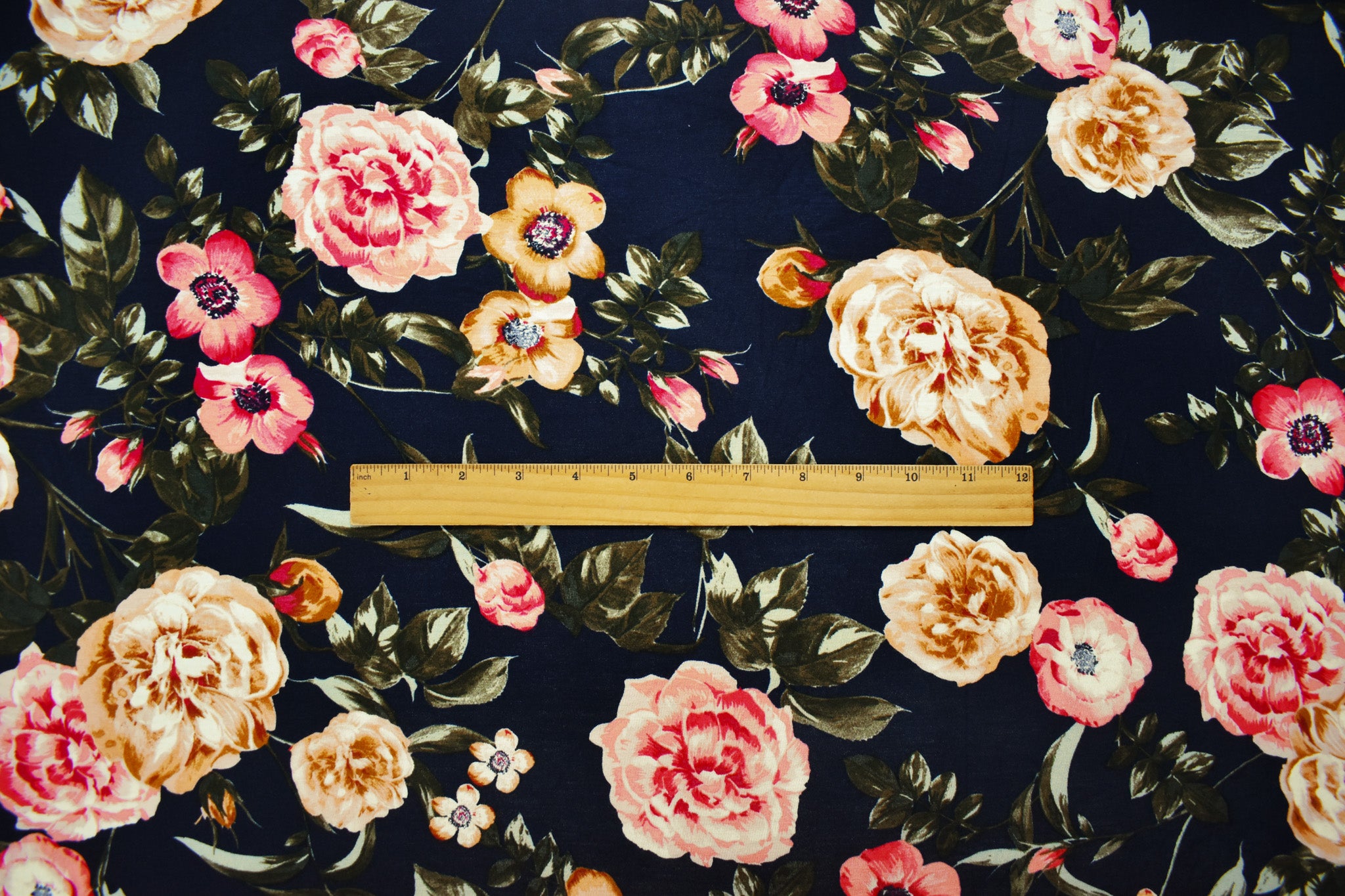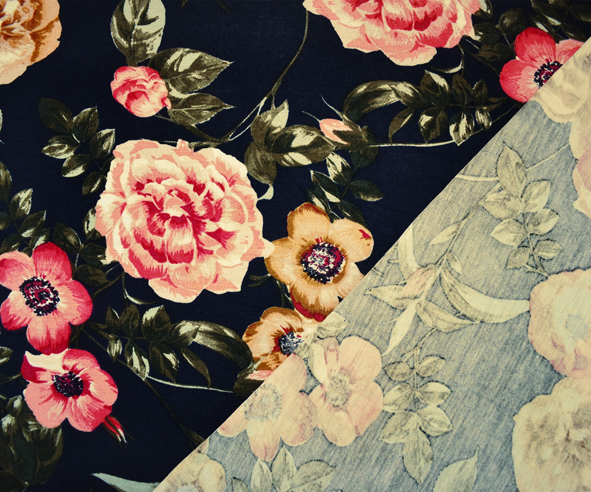 Blue-Multi Rayon Stretch Spandex Floral Print Jersey Knit Fabric
