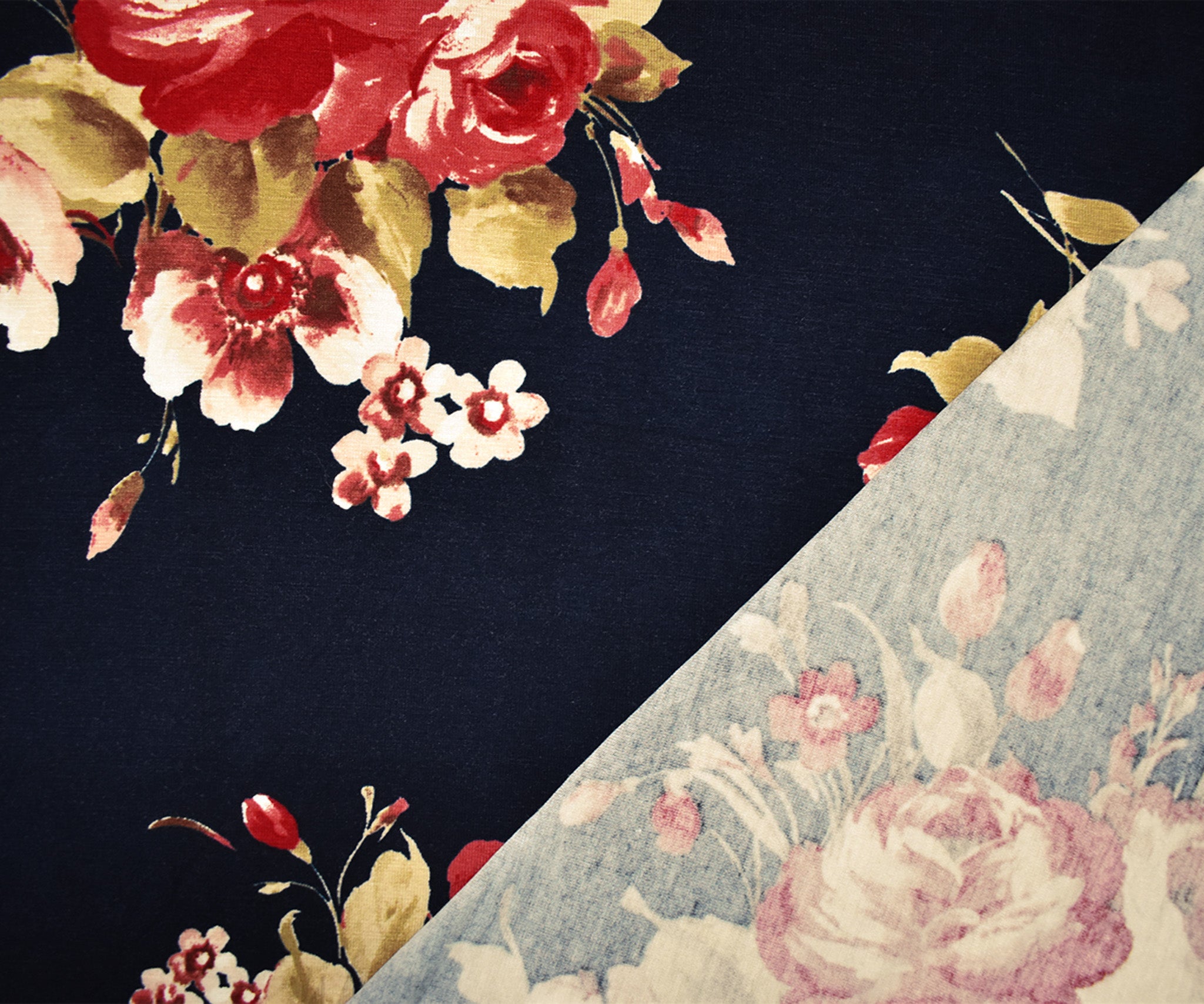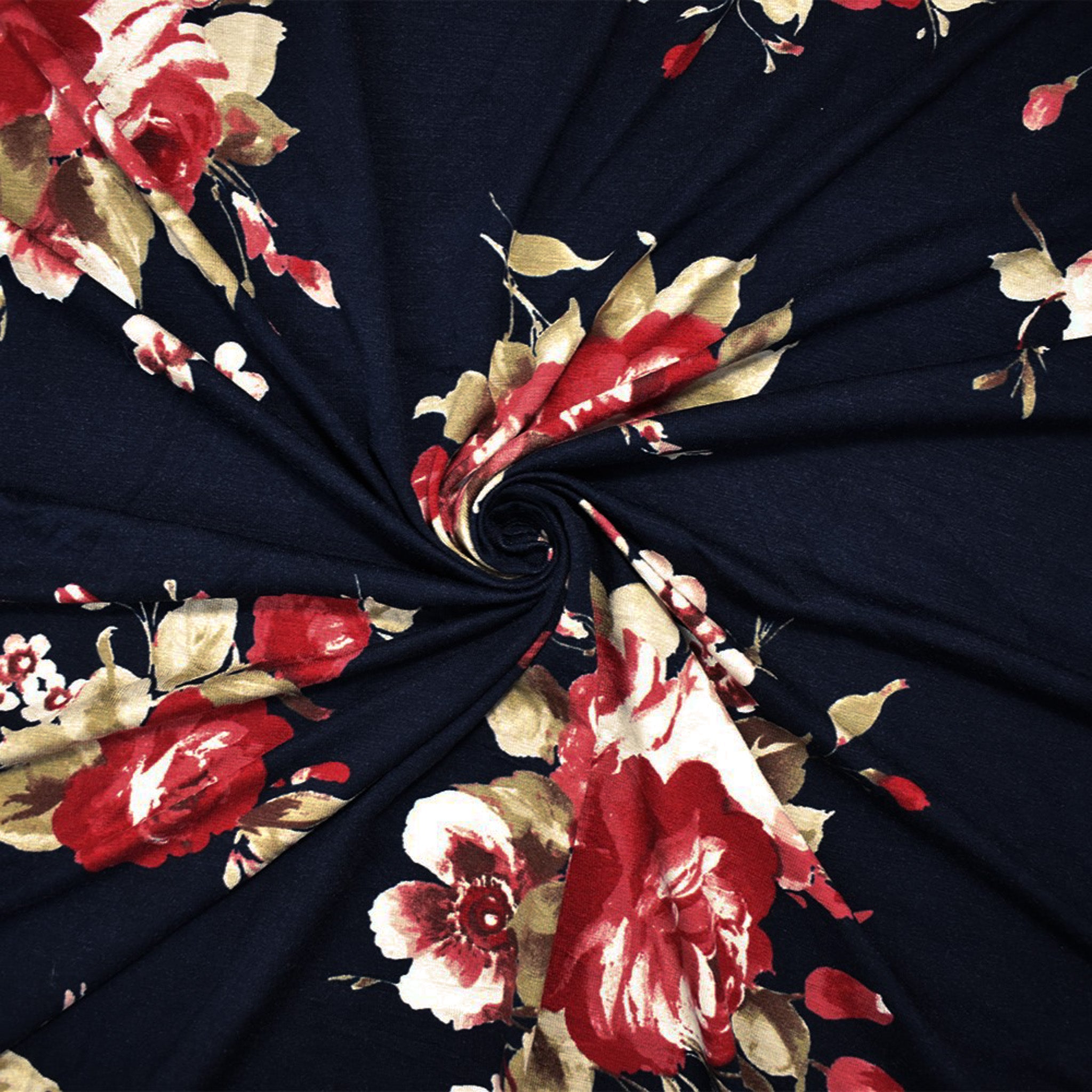Blue-Red-Multi Stretch Spandex Floral Printed Jersey Knit Fabric
