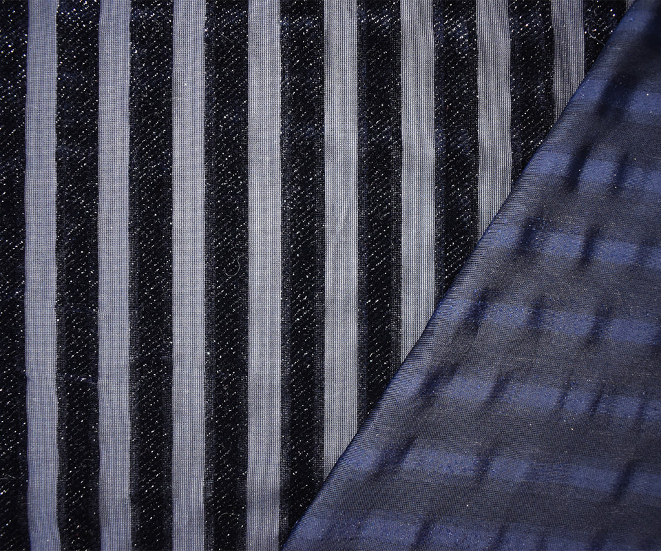 Blue-Sliver Poly Burnout Stripe Stretch Velvet Mesh Knit Fabric