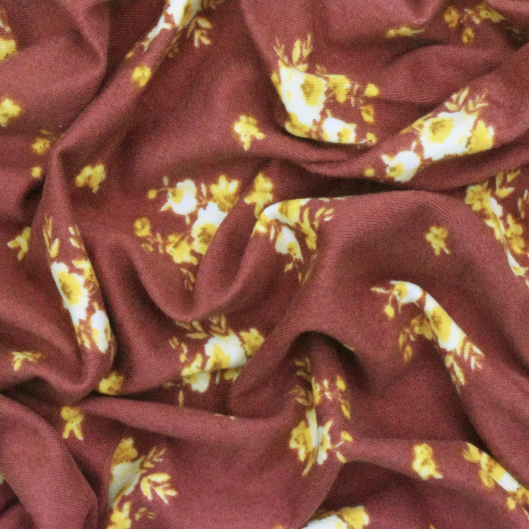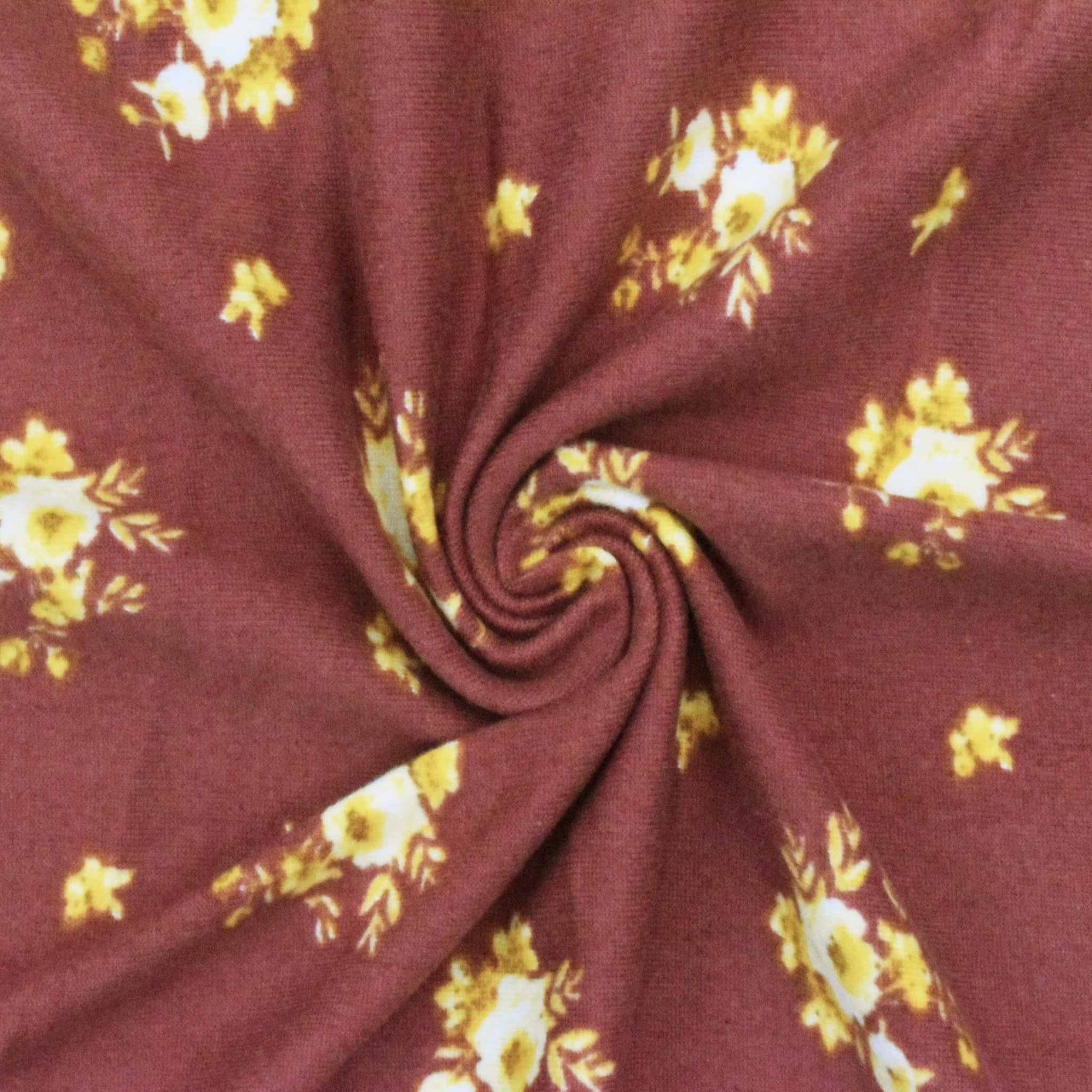 Brick Red-Multi Floral Printed Stretch Double Brushed Jersey Knit Fabric