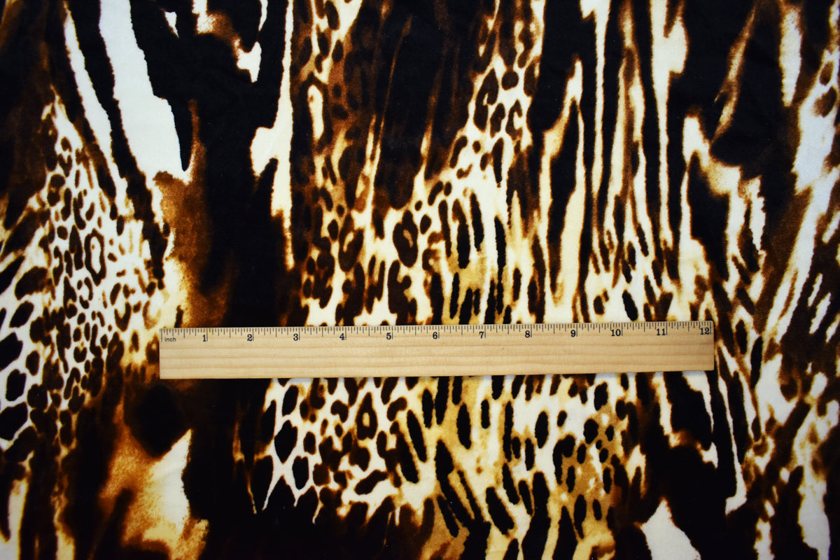 Brown-Black-Multi Poly Stretch Leopard Printed Velvet Knit Fabric