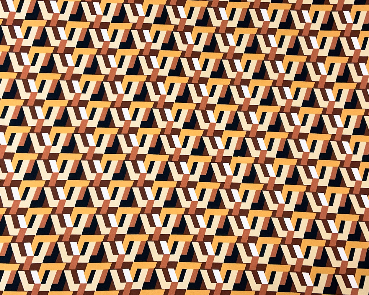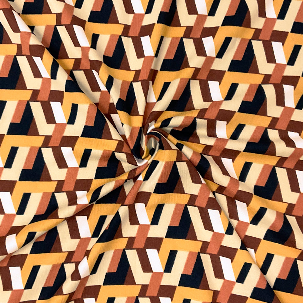 Brown-Multi Poly Spandex Stretch Geometric Printed Brush Jersey Knit Fabric