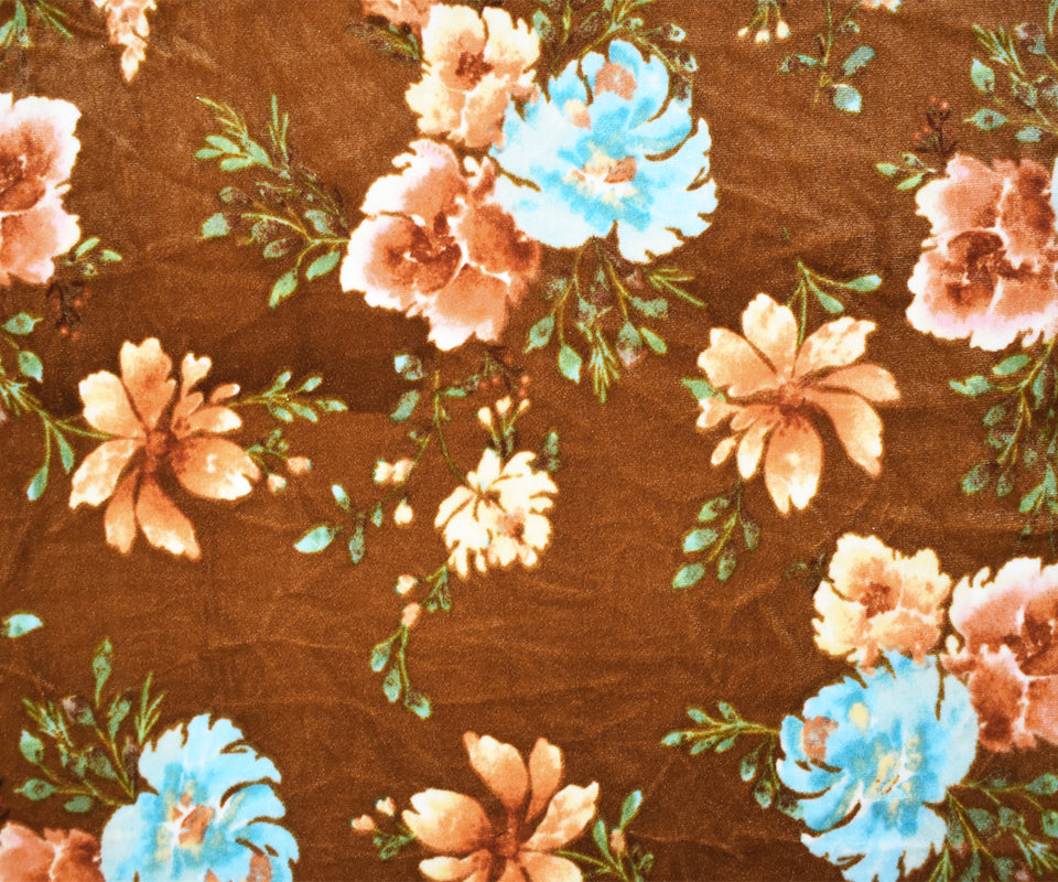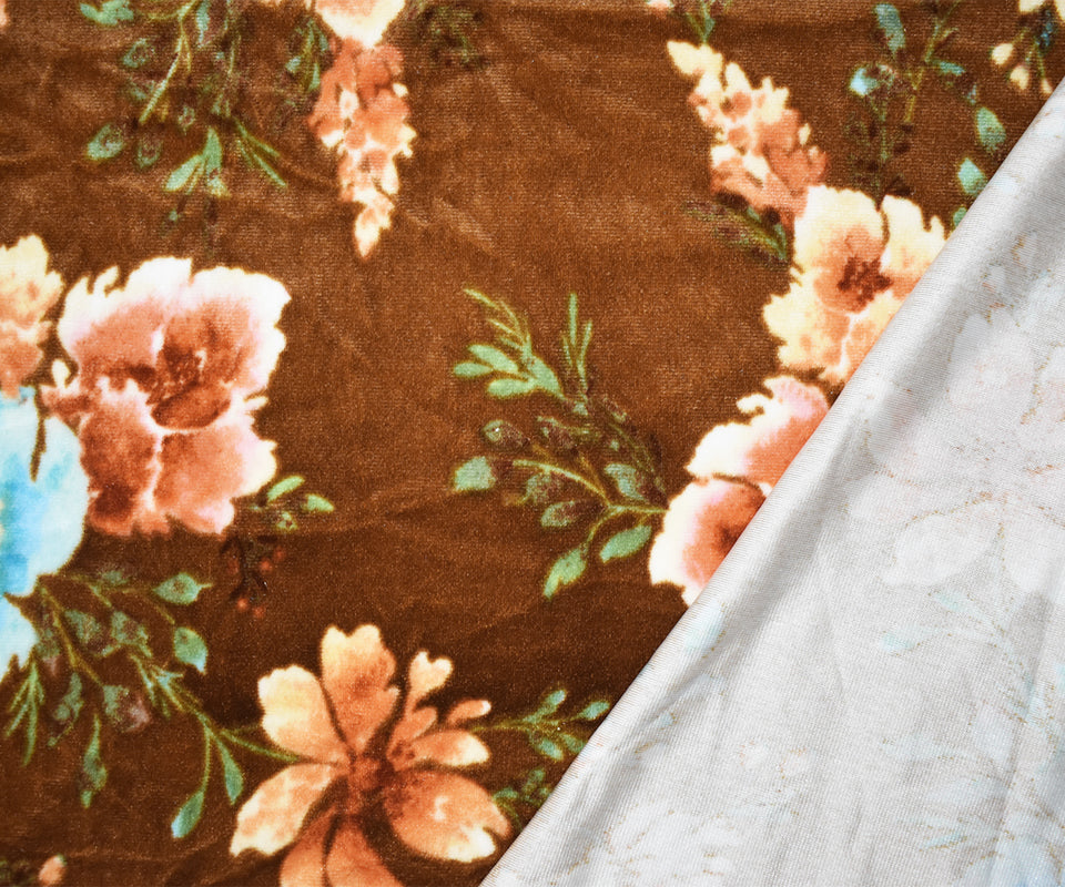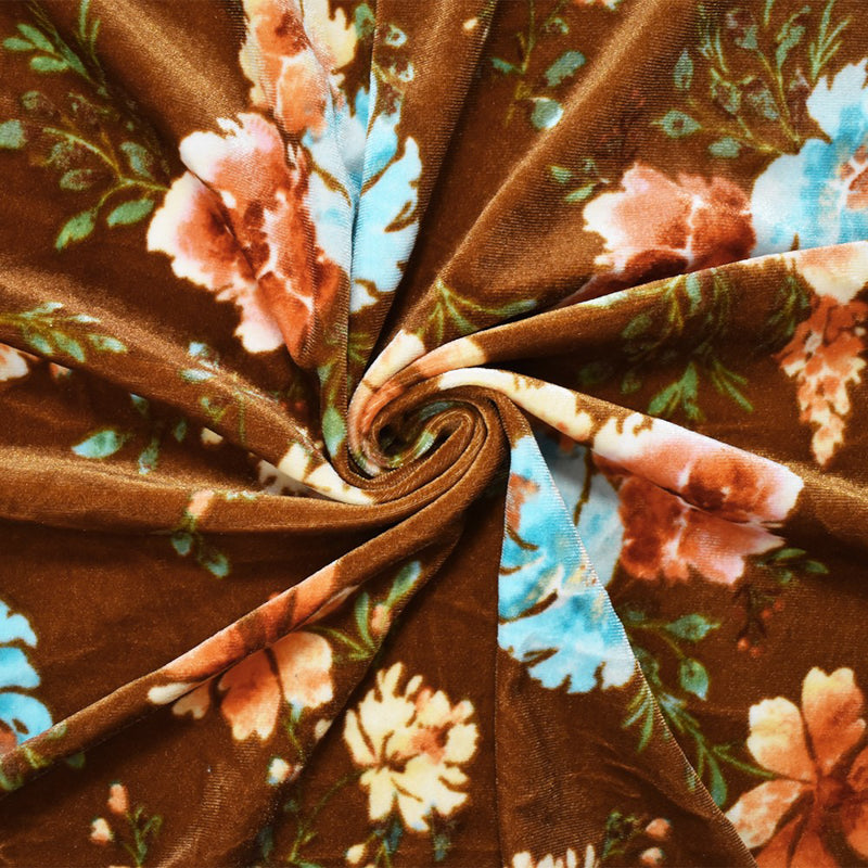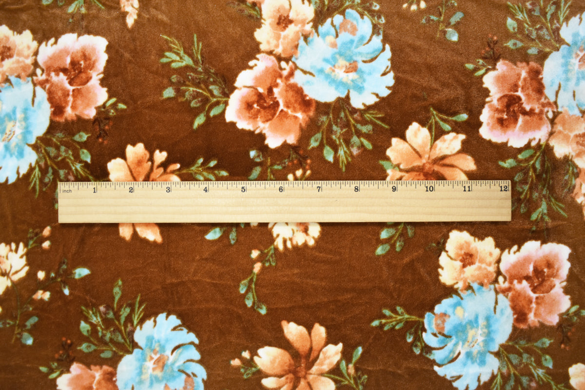 Brown-Multi Poly Stretch Spandex Floral Print Velvet Knit Fabric