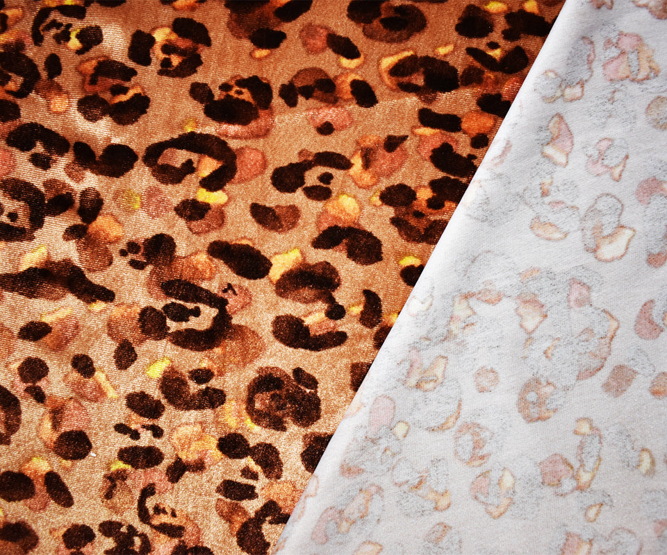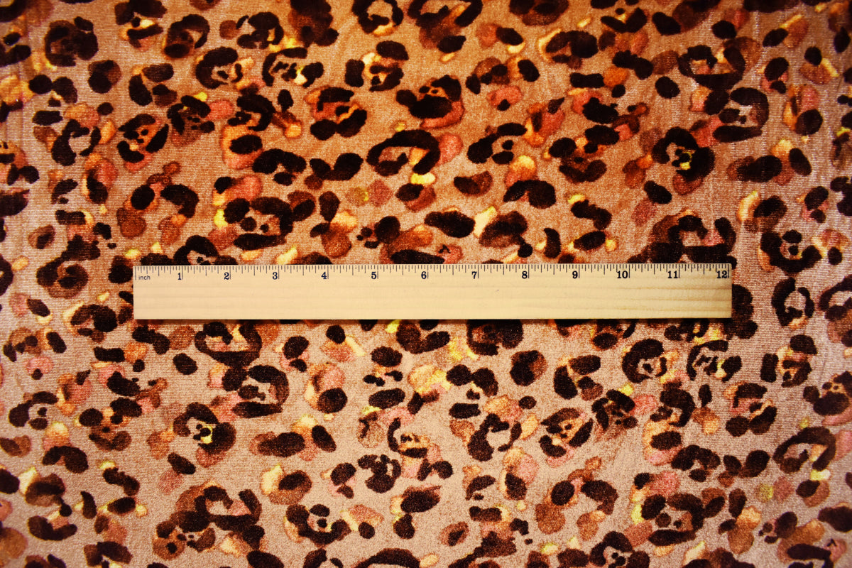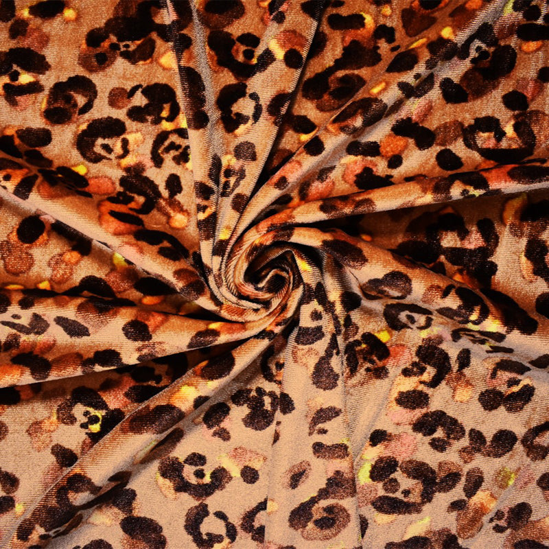 Brown-Orange-Multi Poly Leopard Printed Velvet Knit Fabric