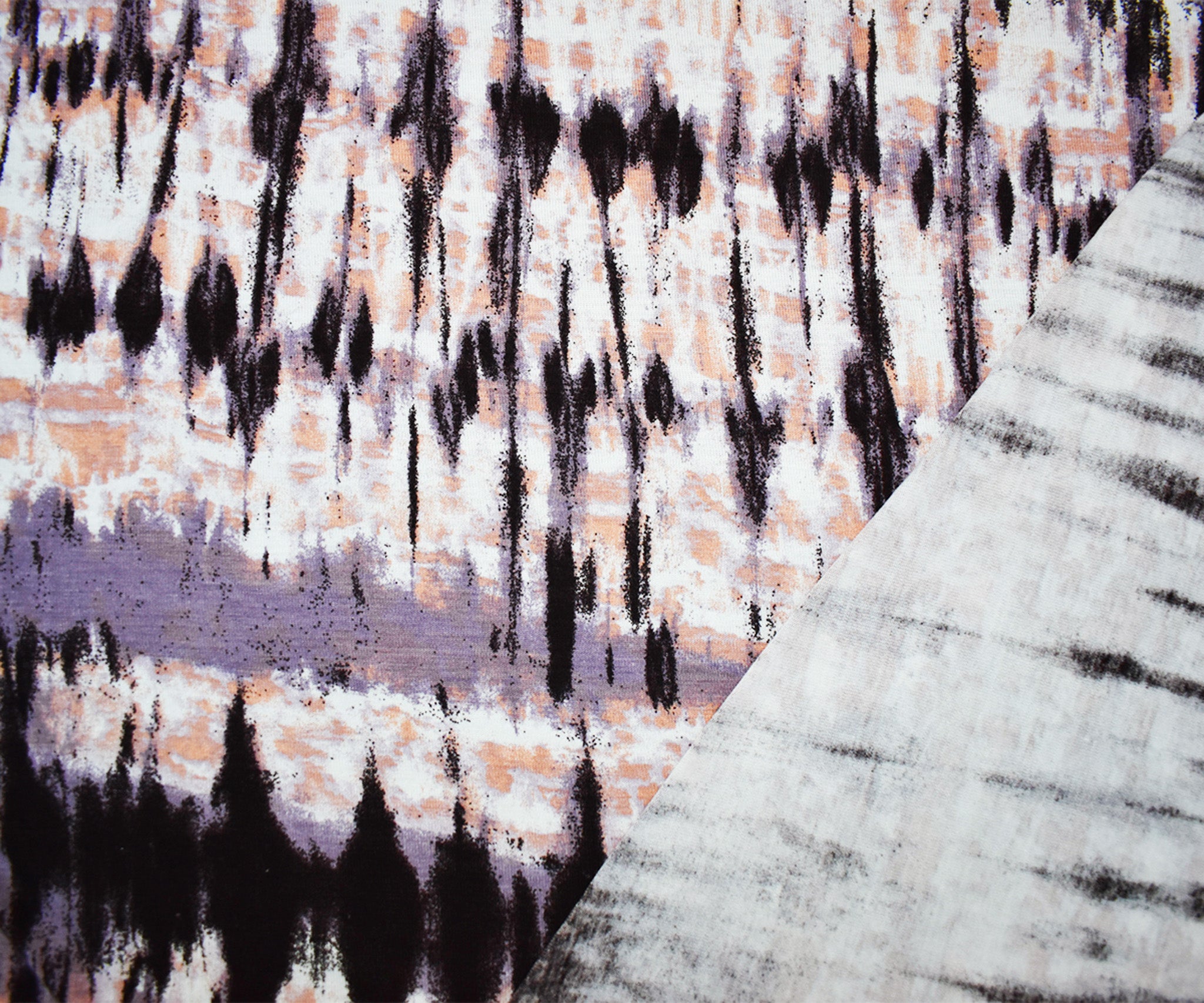 Brown-Purple-Multi Rayon Tie Dye Printed Jersey Knit Fabric