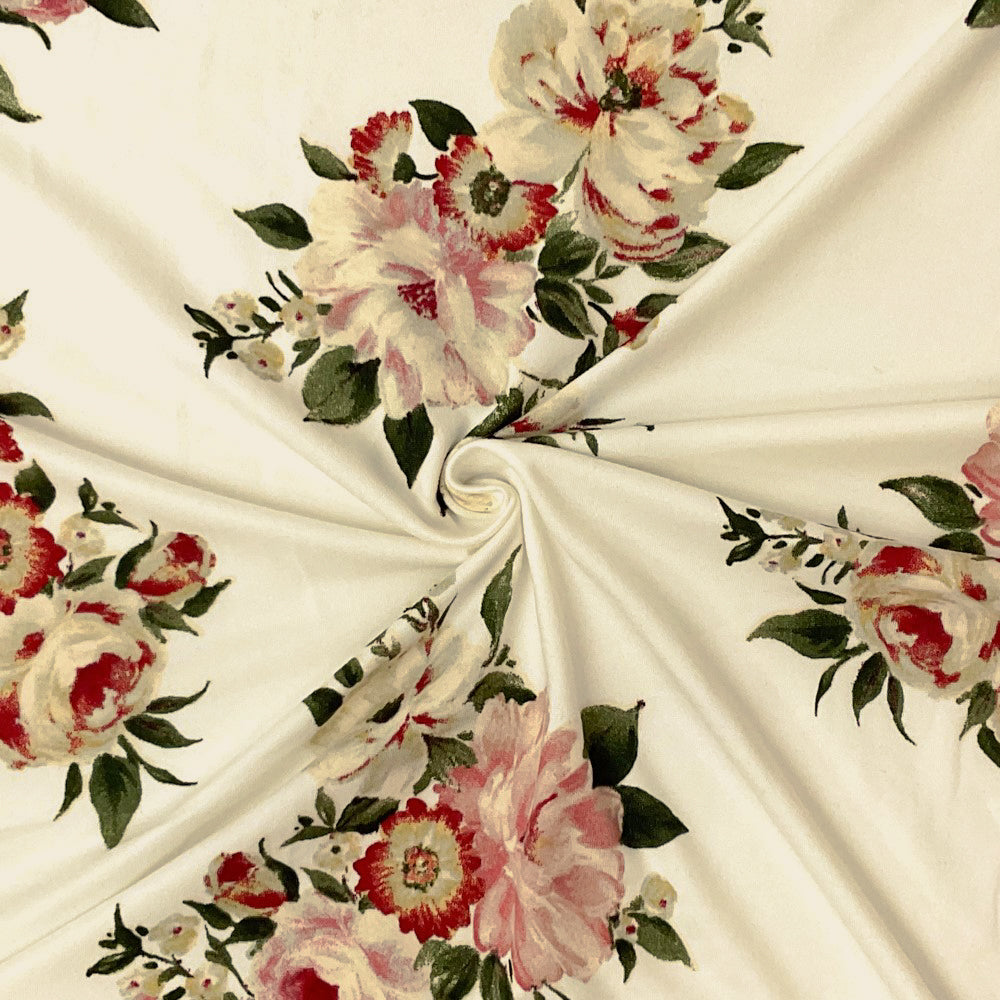 Ivory-Multi Poly Stretch Spandex Floral Print DB Jersey Knit Fabric