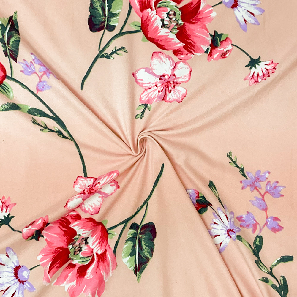 Light Pink-Multi Poly Stretch Spandex Floral Print DB Jersey Knit Fabric