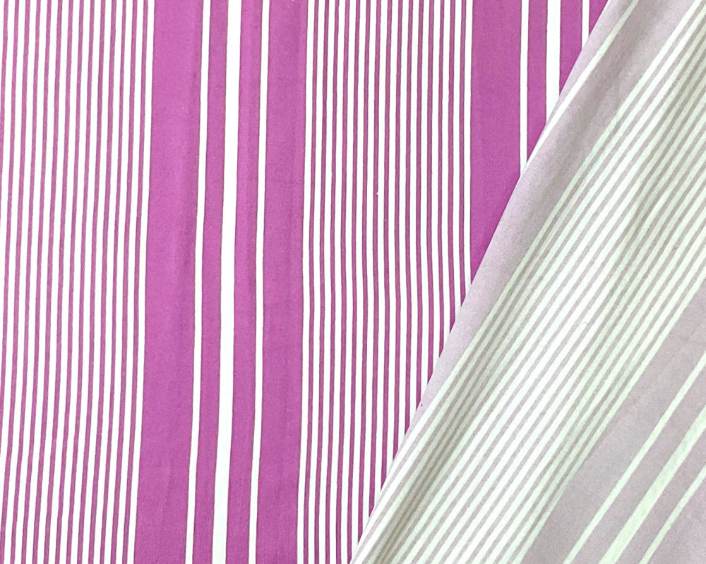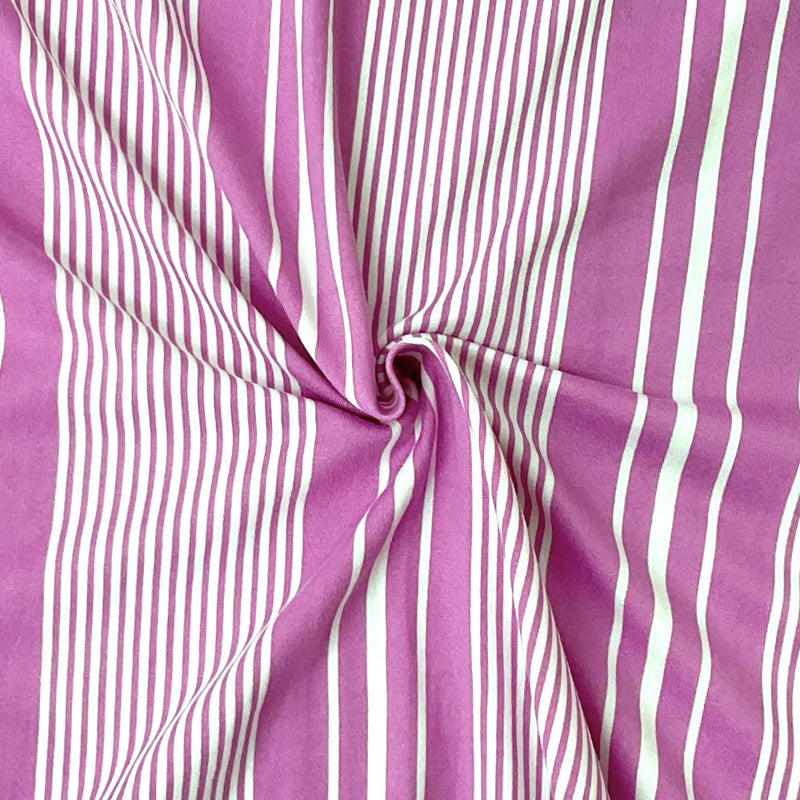 Lilac Purple Poly Stretch Vertical Stripe Print DB Jersey Knit Fabric