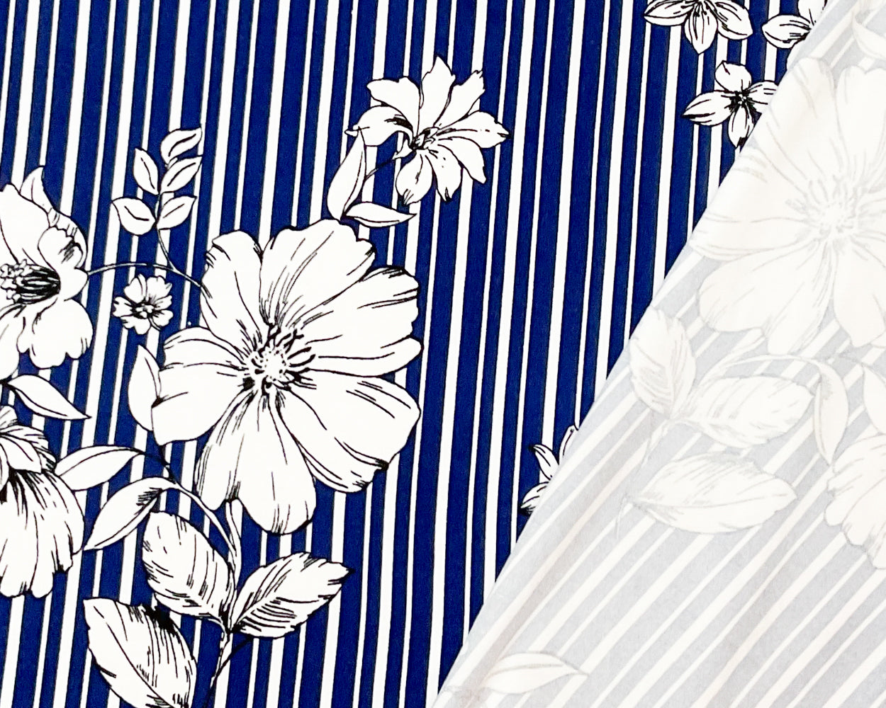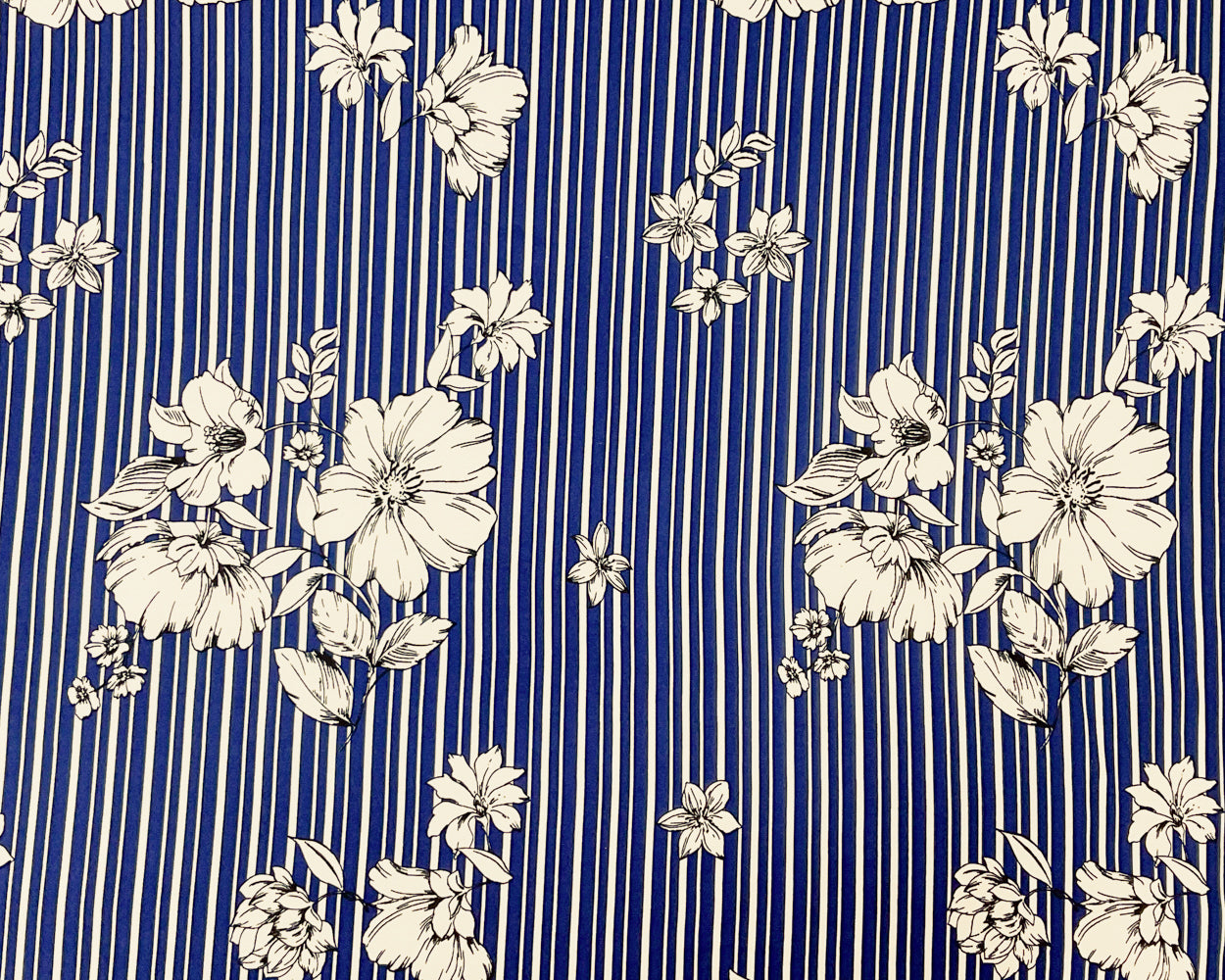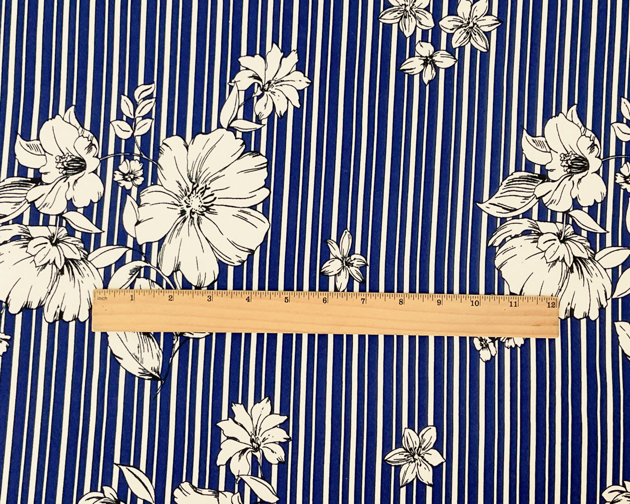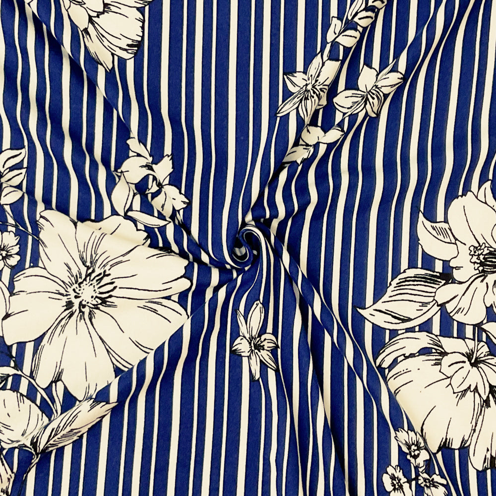 Navy-Multi Poly Spandex Stretch Stripe Floral Print DB Jersey Knit Fabric