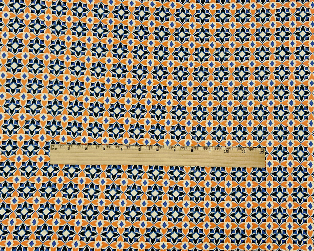Orange-Multi Poly Stretch Spandex Floral Tile Print DB Jersey Knit Fabric