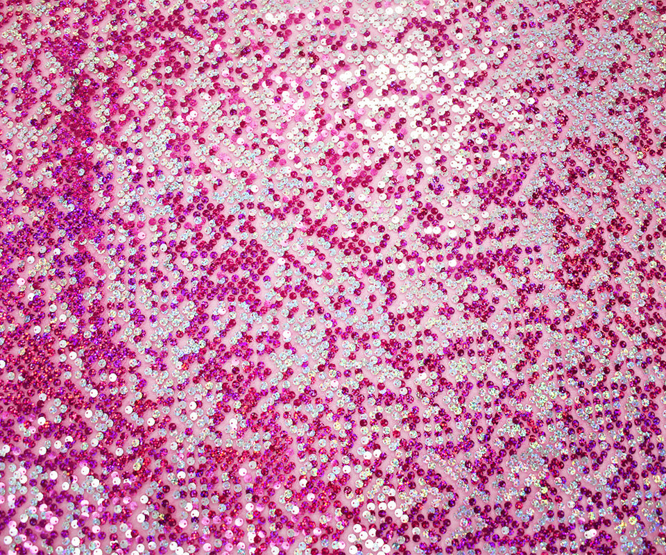 Pink-Magenta-Silver Nylon Sequined Tulle Fabric