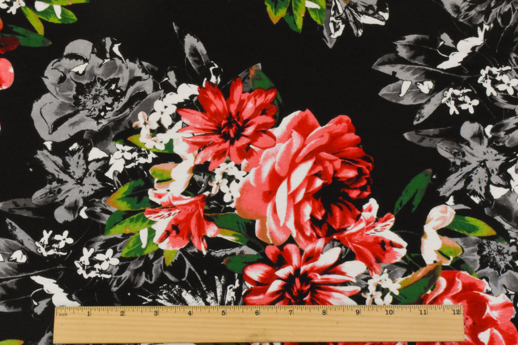 Pure Red-Black-Multi Floral Printed Stretch Rayon Jersey Knit Fabric