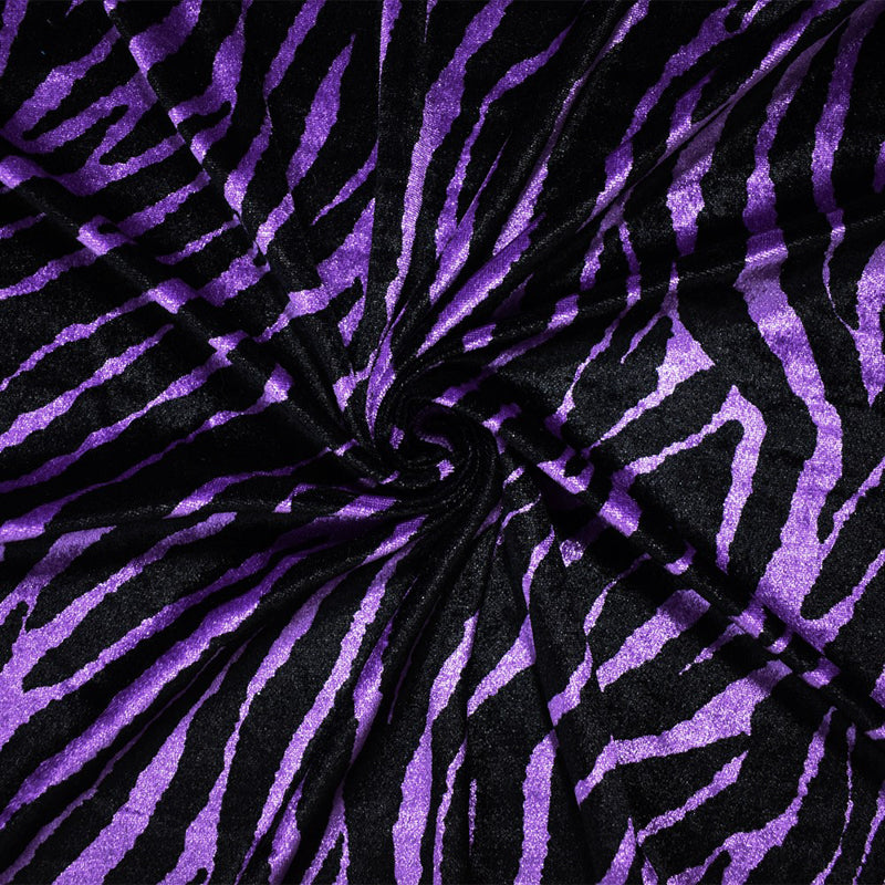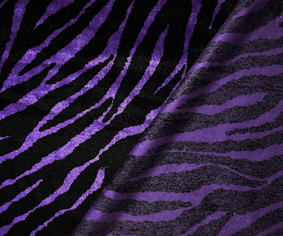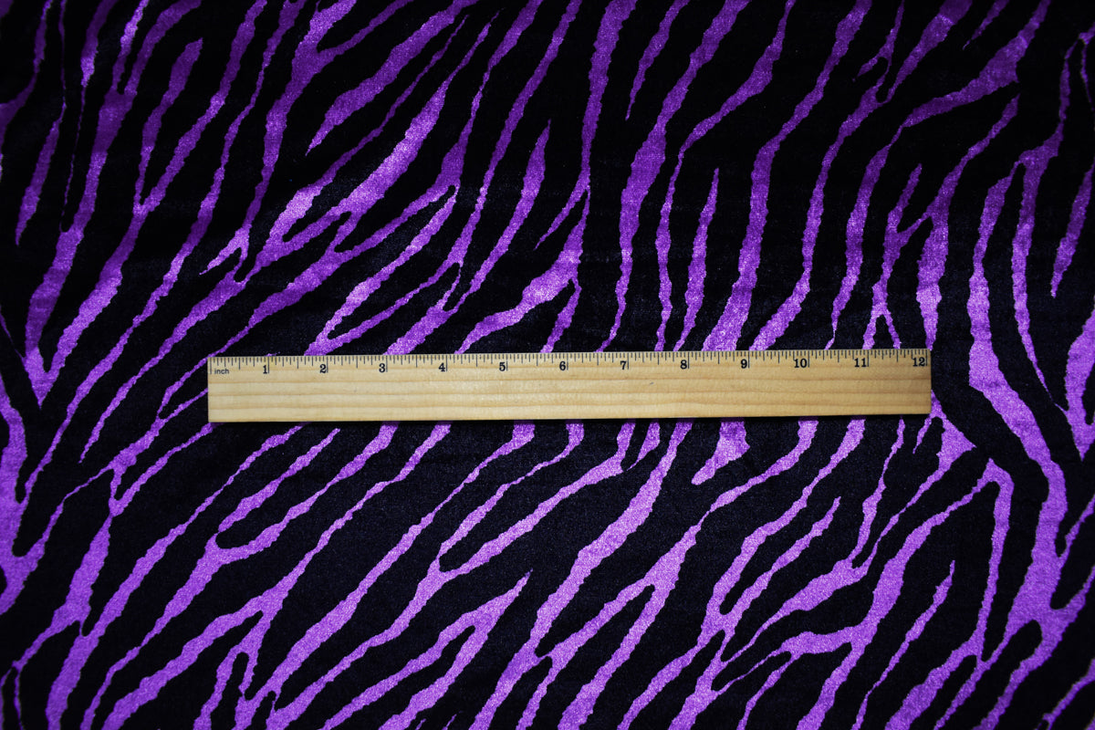 Purple-Black Poly Stretch Spandex Zebra Printed Velvet Knit Fabric