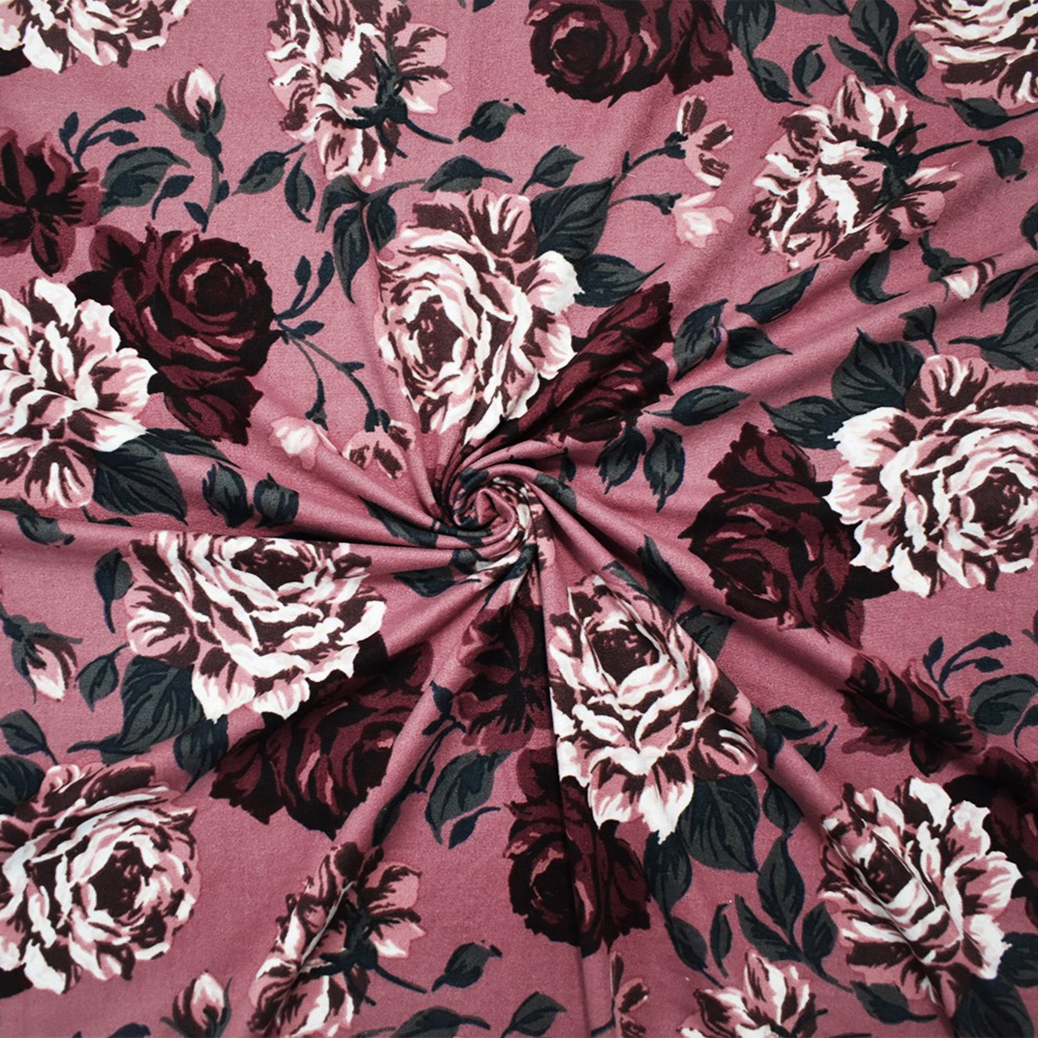 Purple-Multi Floral Printed Double Brushed Jersey Knit Fabric