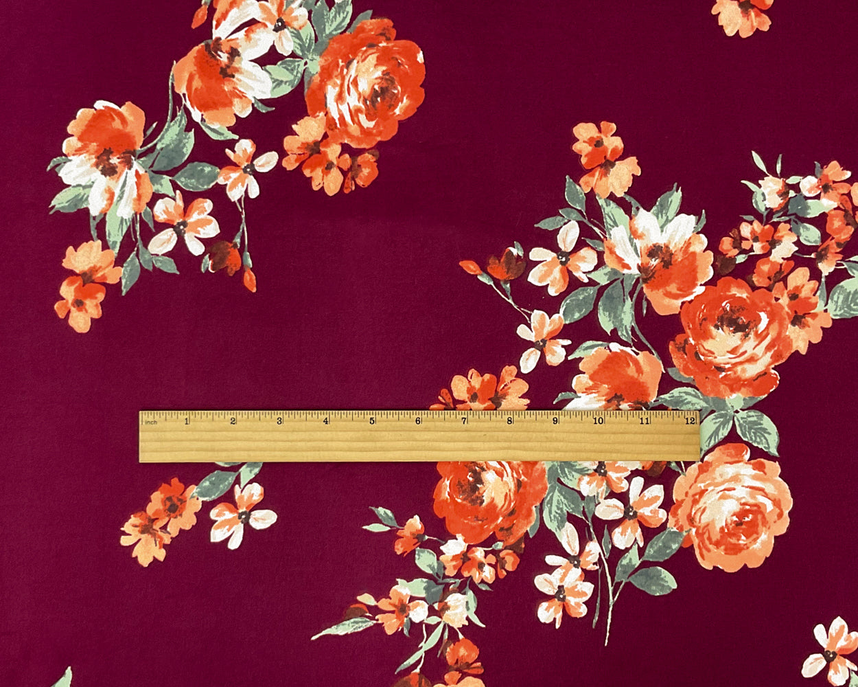 Red-Multi Poly Spandex Stretch Floral Print DB Jersey Knit Fabric