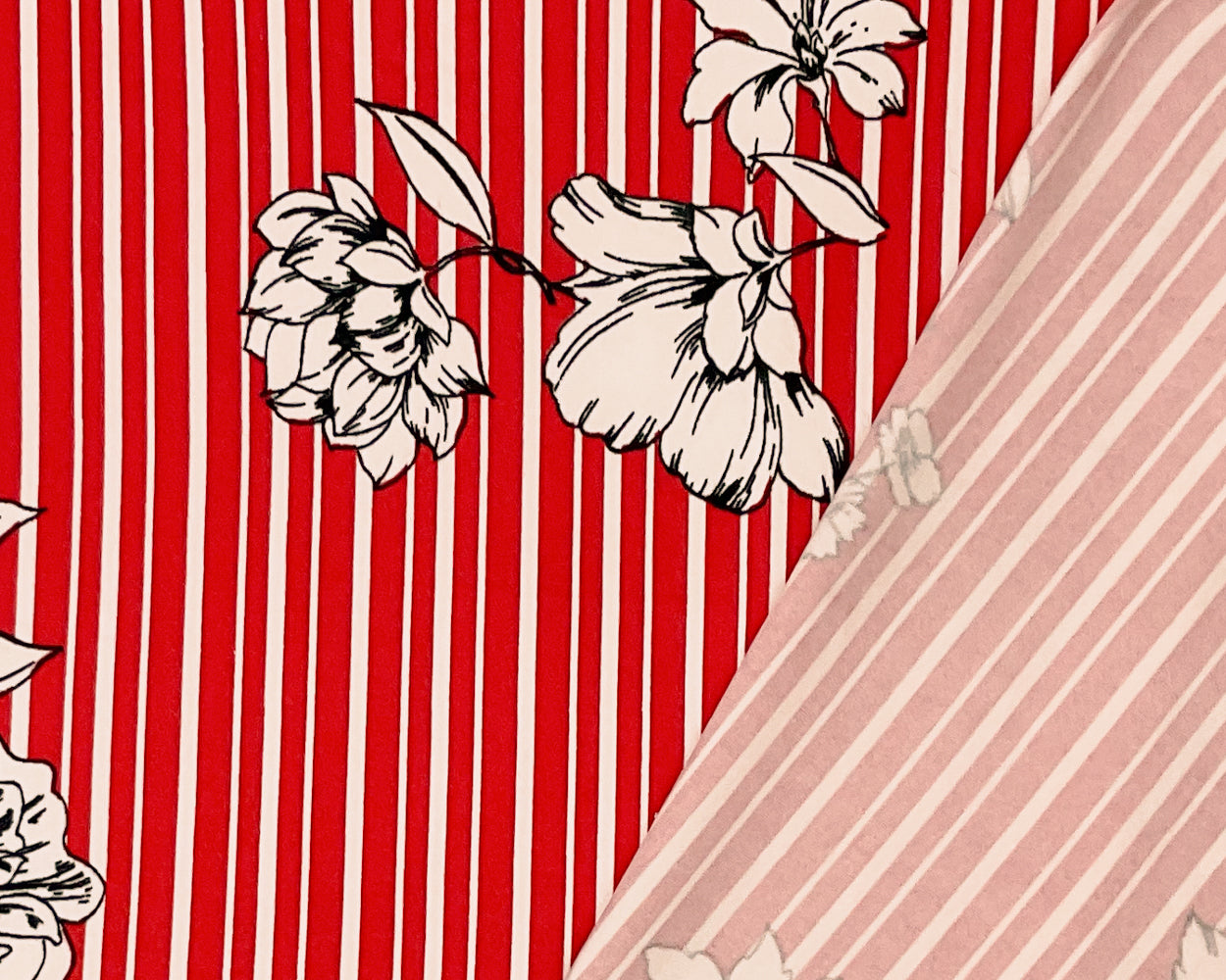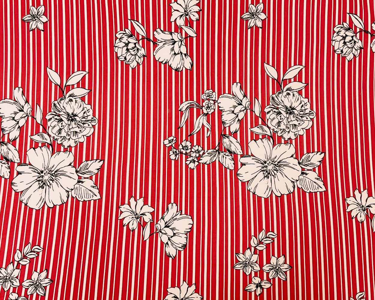 Red-Multi Poly Spandex Stretch Floral Stripe Print DB Jersey Knit Fabric
