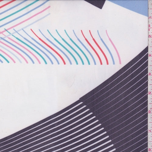 White/Violet Multi Abstract Stripe Power Mesh Fabric