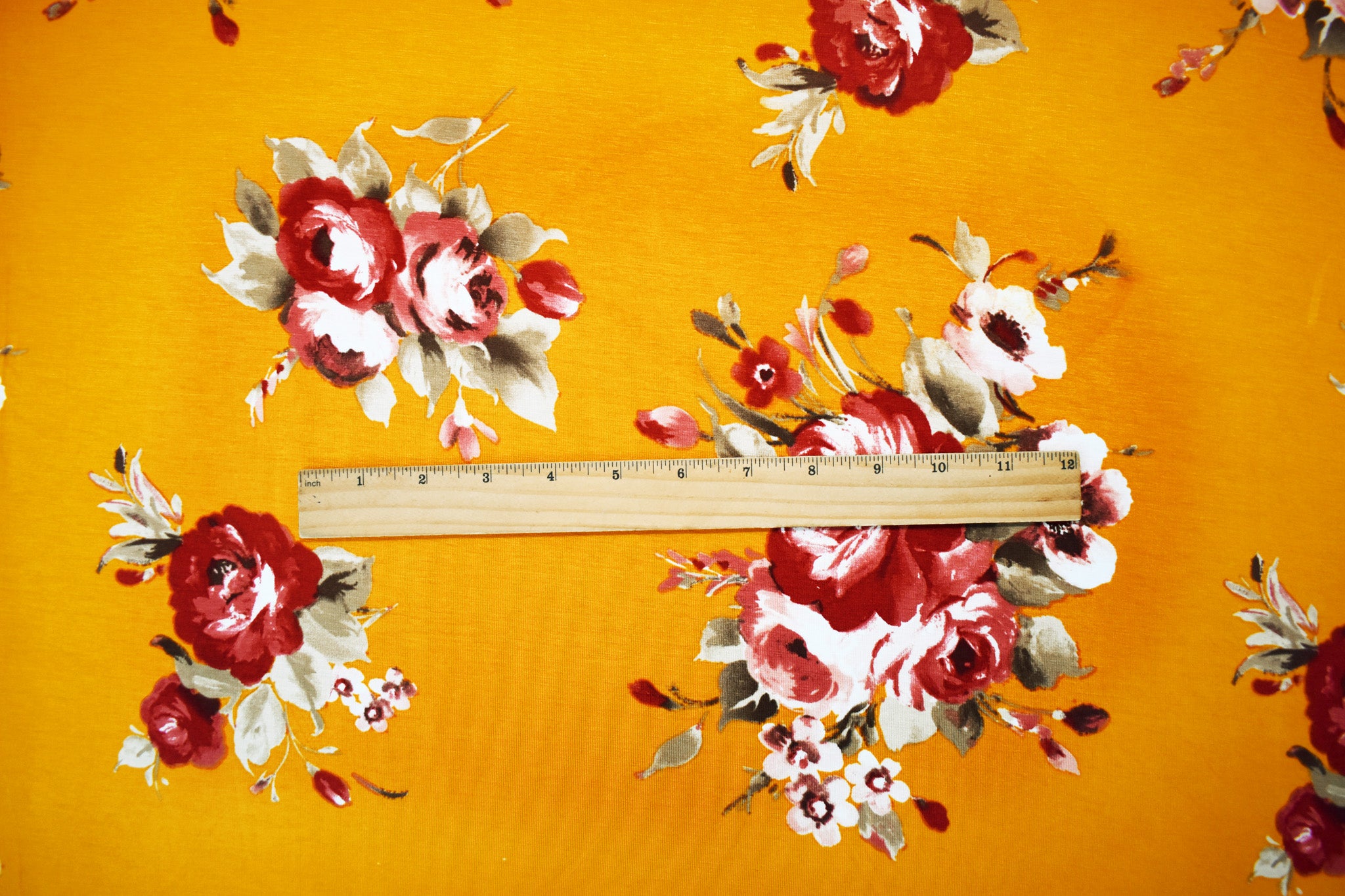 Yellow-Multi Stretch Spandex Floral Printed Jersey Knit Fabric