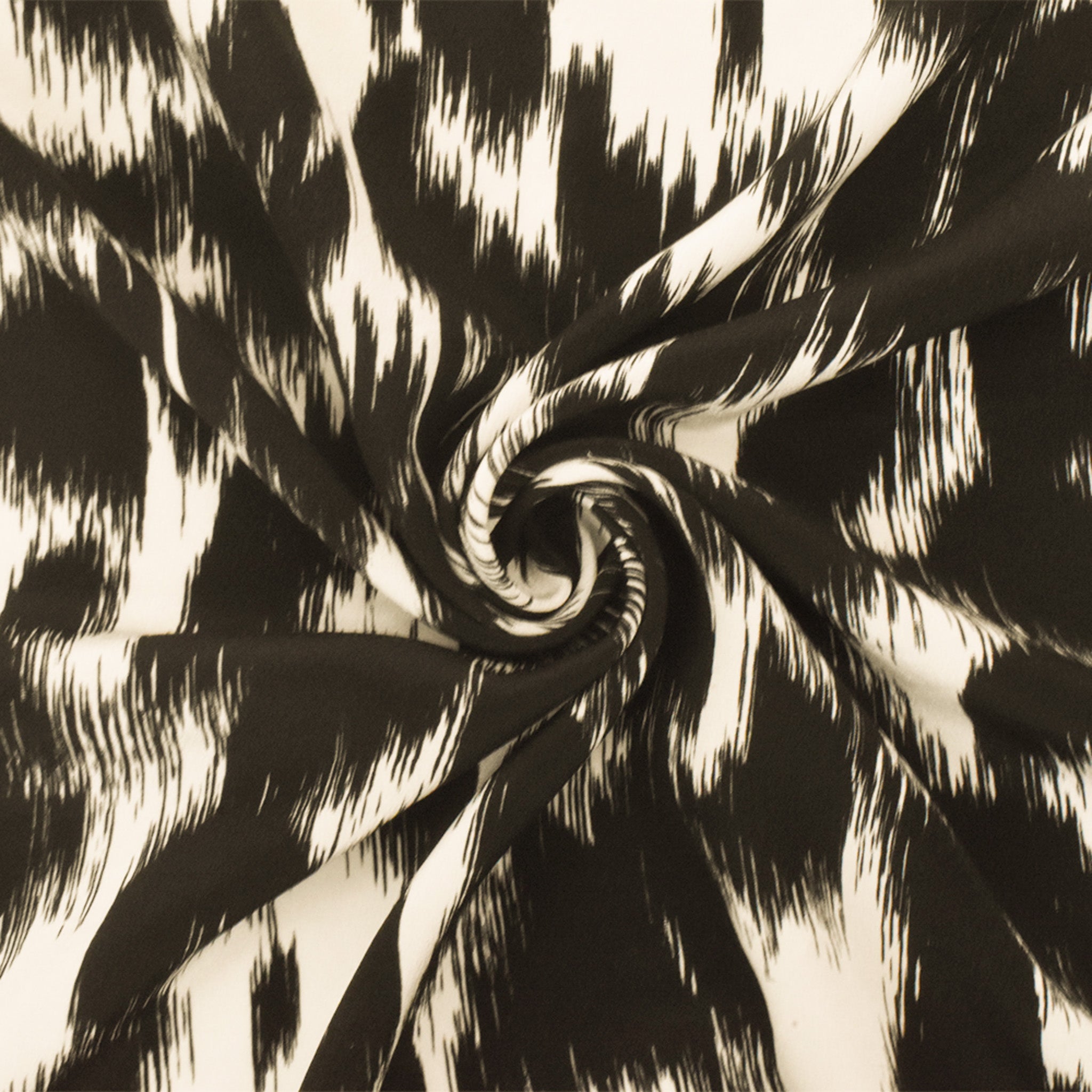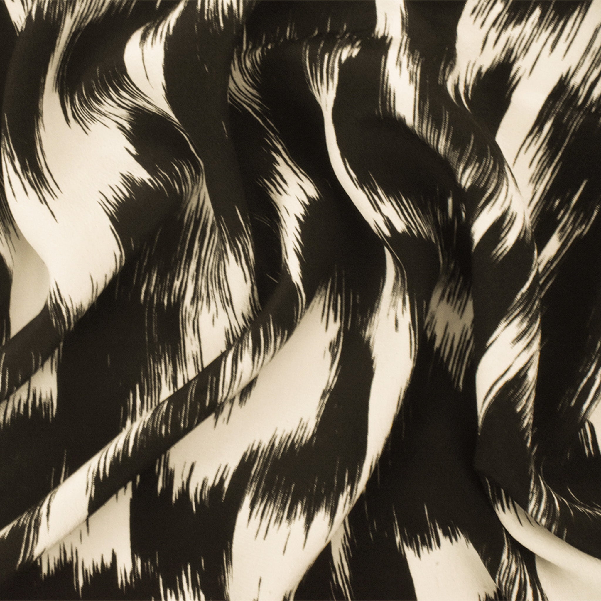 Black-Ivory Famous Designer Silk Paint Brush Printed Crepe De Chine Fabric
