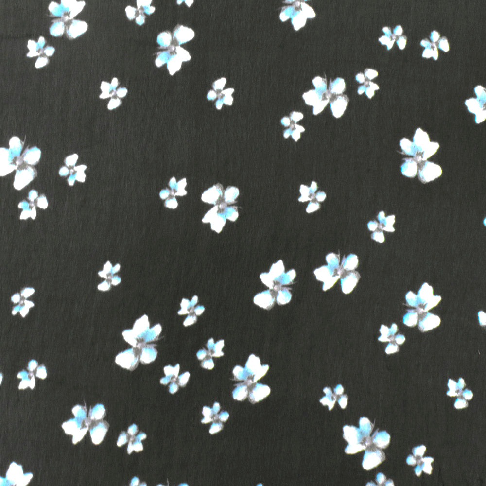 Black-Teal-Multi Famous Designer Floral Print Viscose Chiffon Woven Fabric