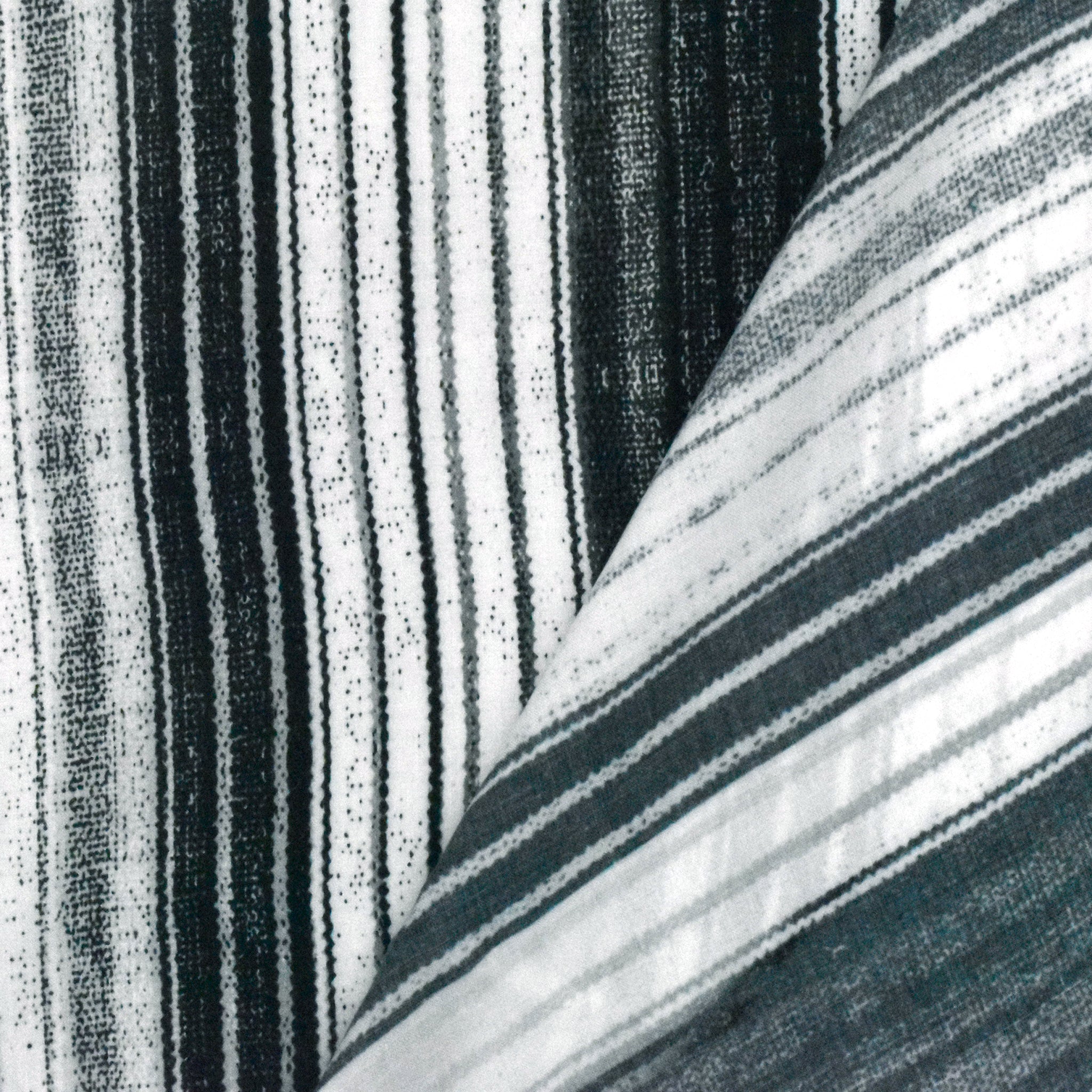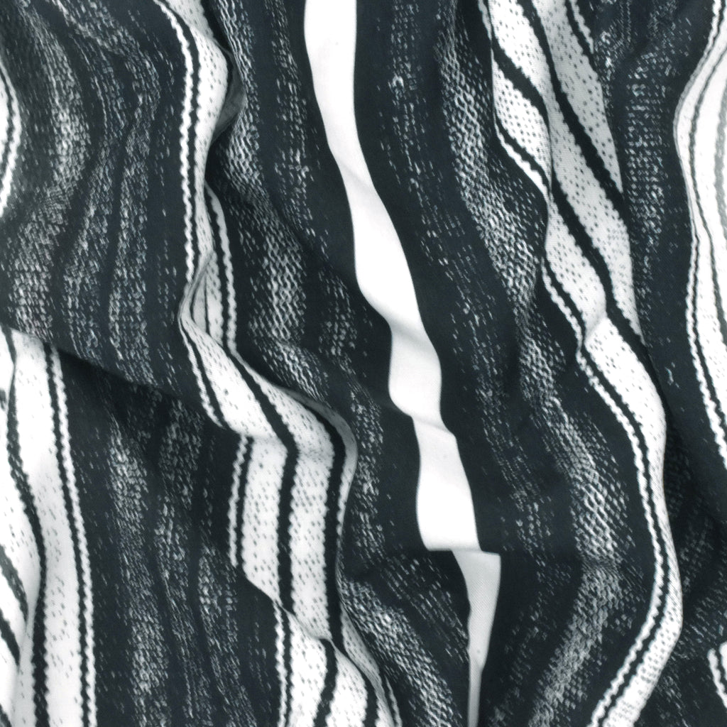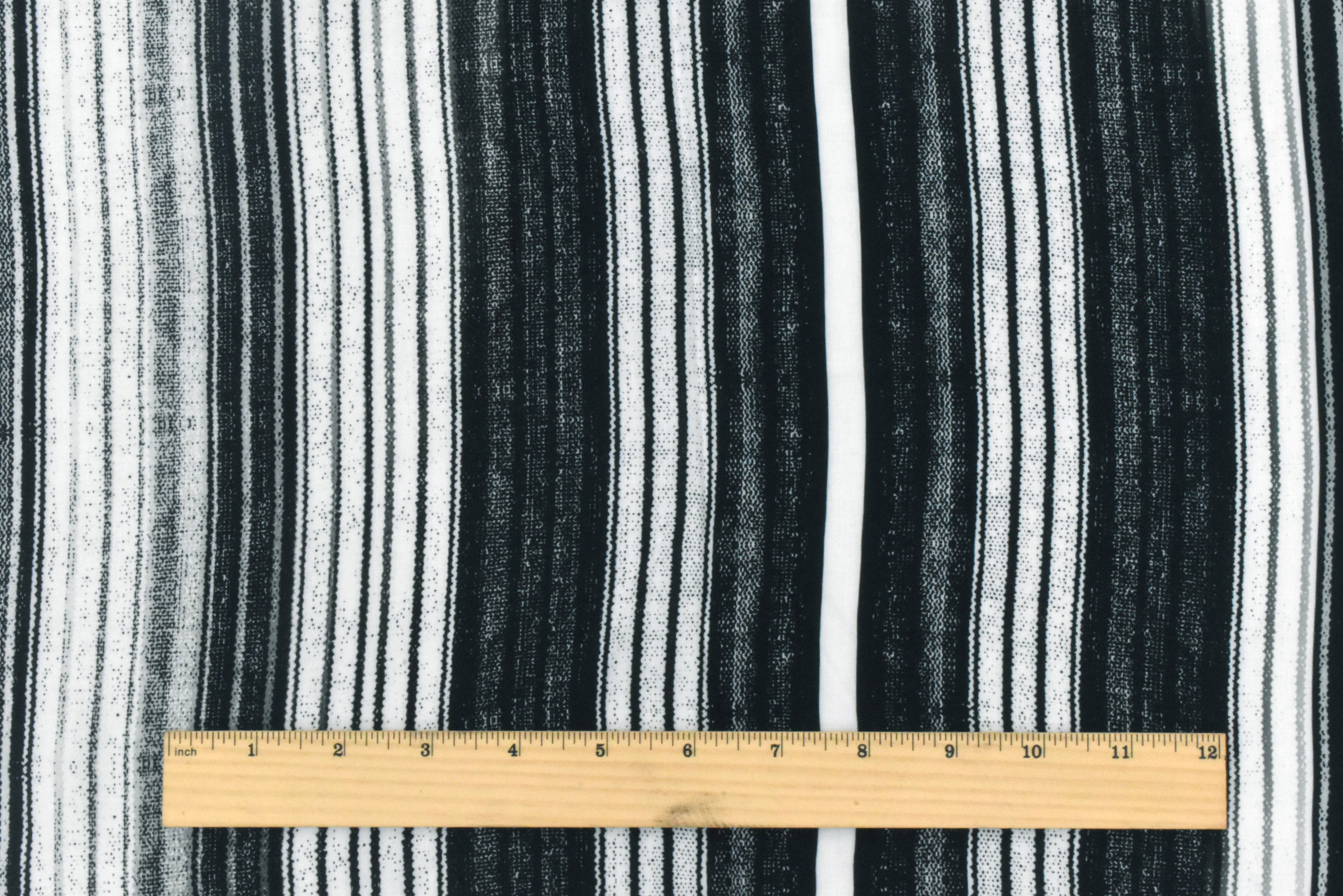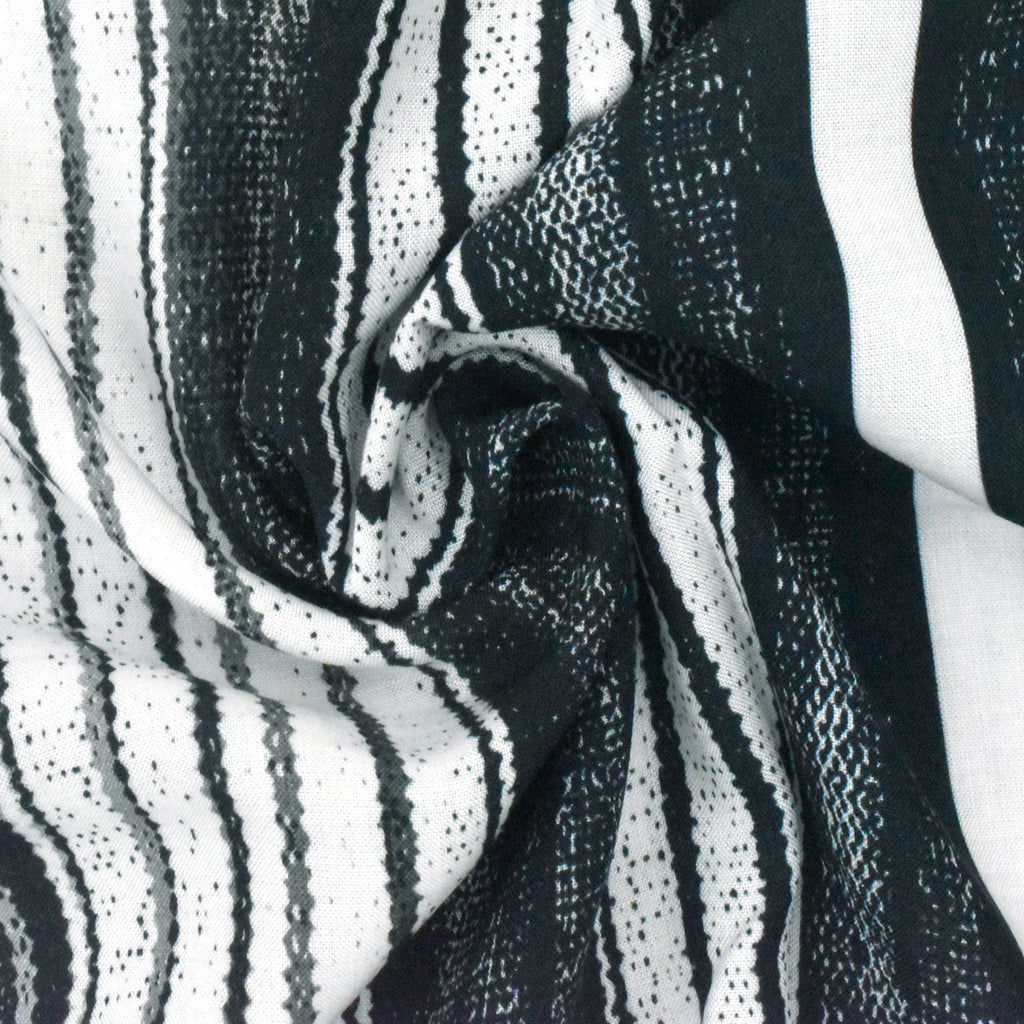 Ivory-Black-Gray Stripe Printed Viscose Challis Woven Fabric