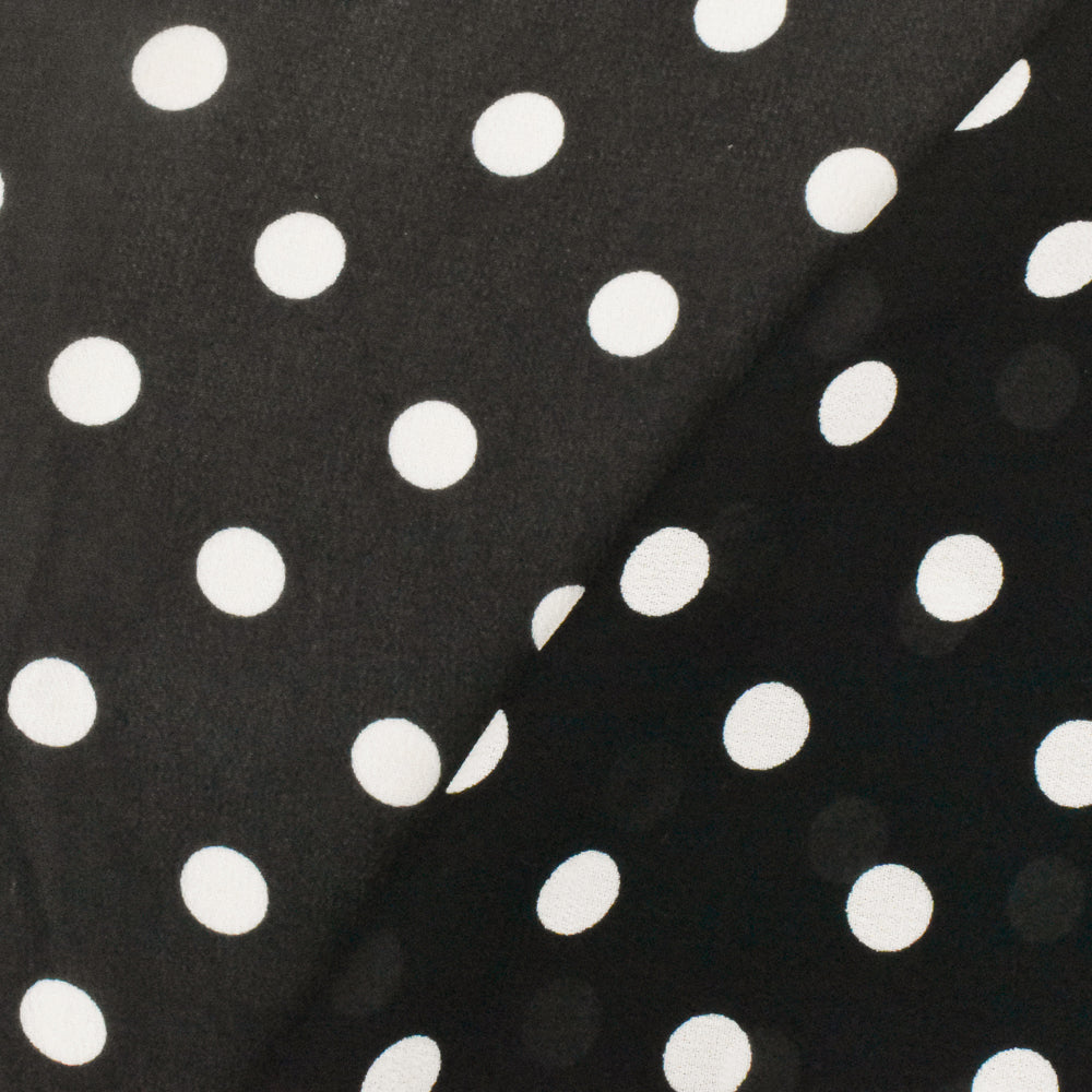 Old Ivory-Black Famous Designer Dot Printed Viscose Georgette Woven Fabric