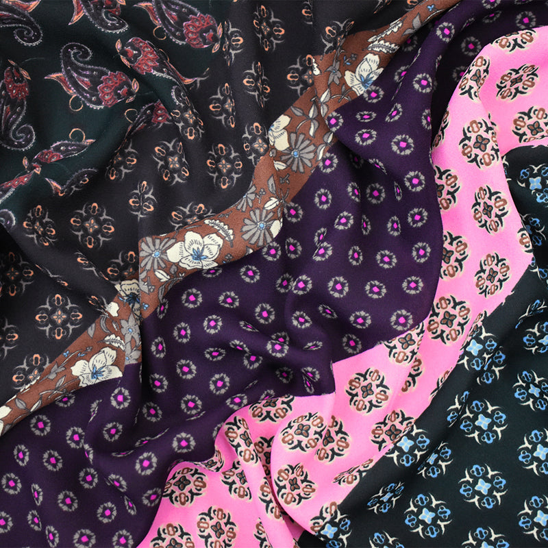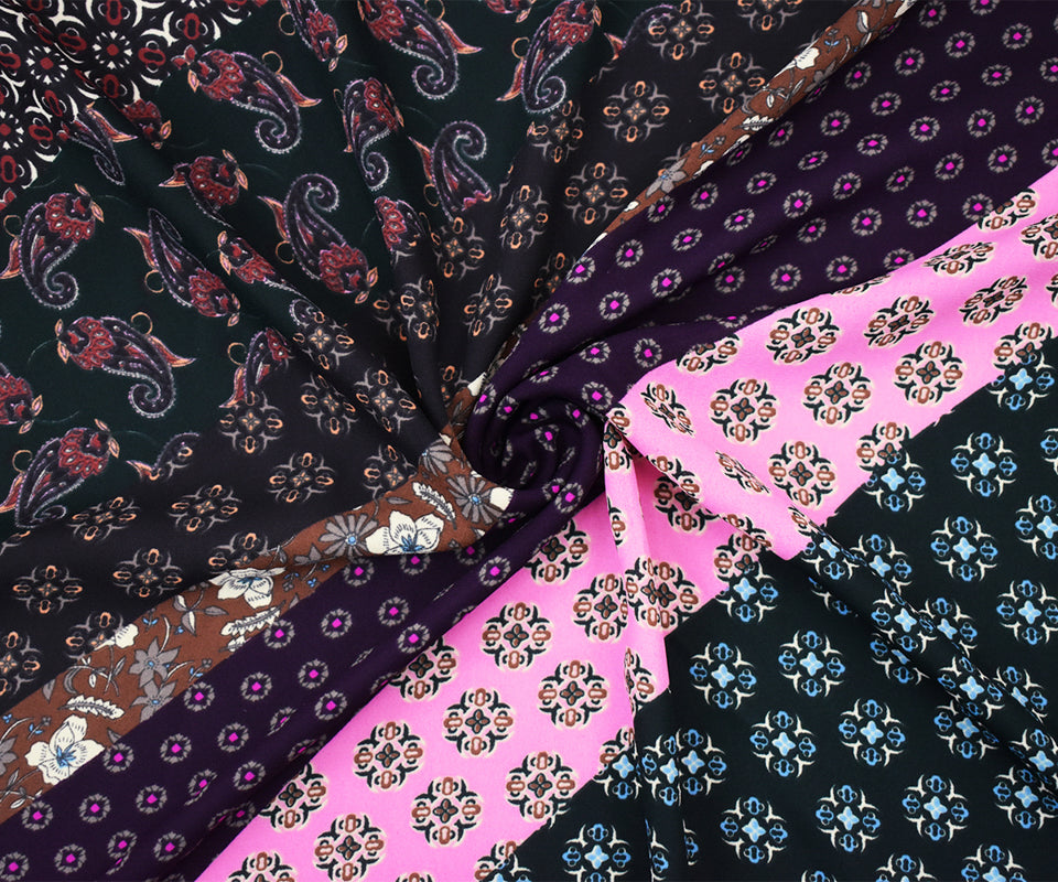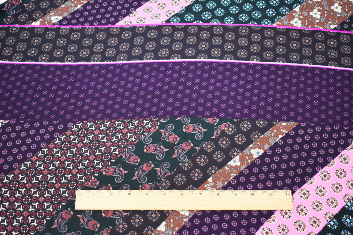 Pink-Multi Designer Pattern Diagonal Print Georgette Fabric