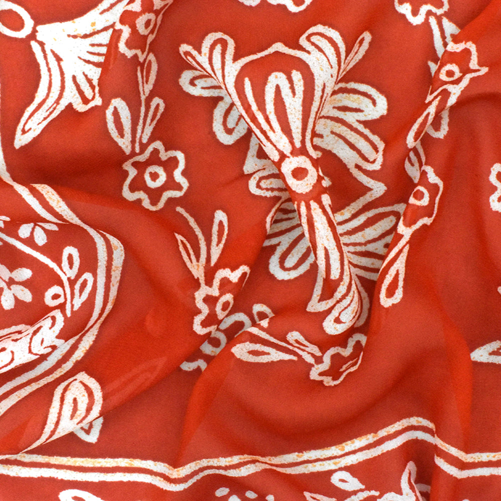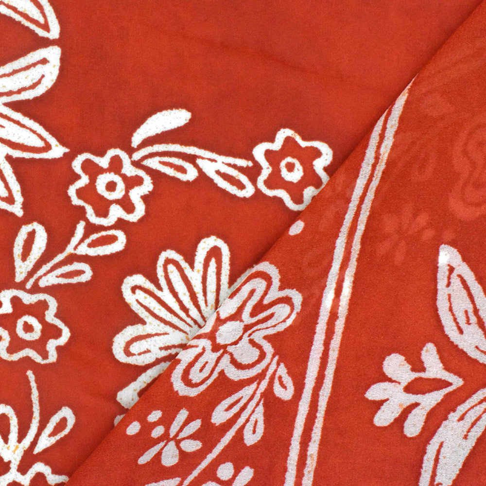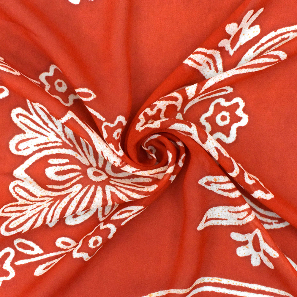 Red-Ivory-Orange Famous Designer Floral Print Rayon Georgette Fabric