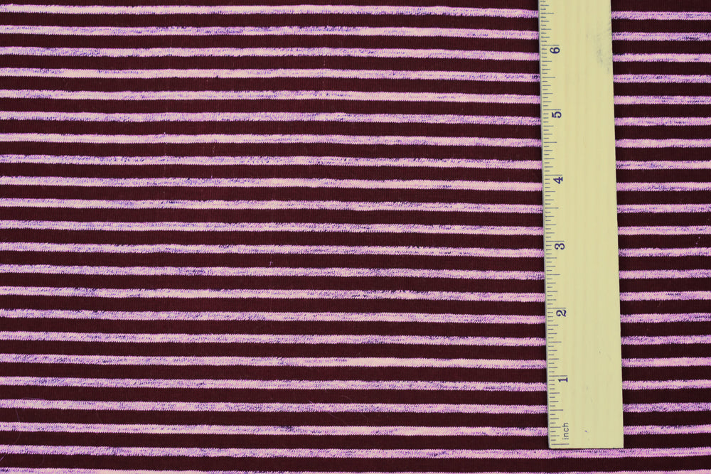 1 1/2 YD PC -Burgundy-Pink-Gray Poly Rayon Stretch Spandex Striped Jersey Knit Fabric