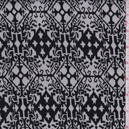 1 5/8 YD PC-White/Black Scroll Octagon Jacquard Double Knit Fabric
