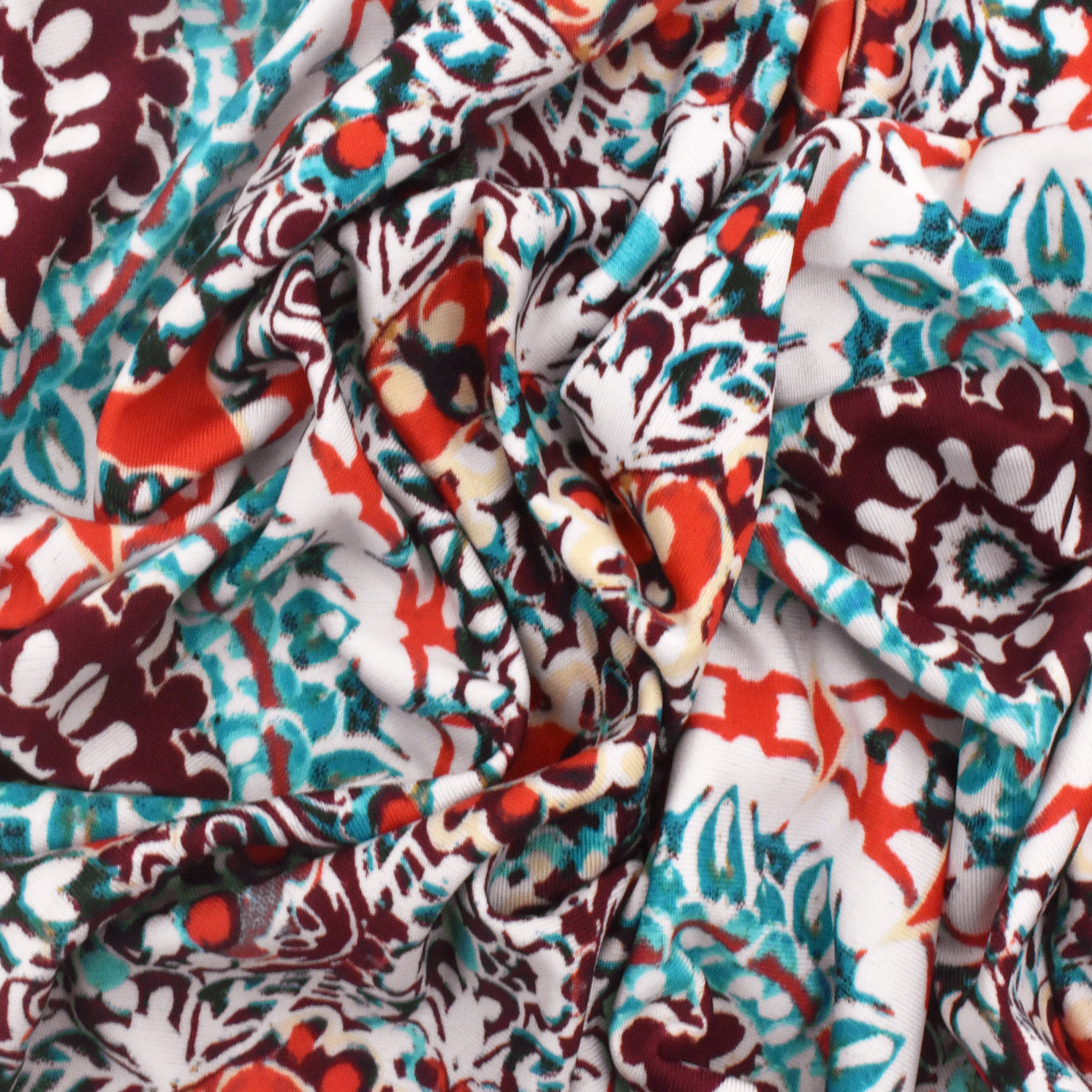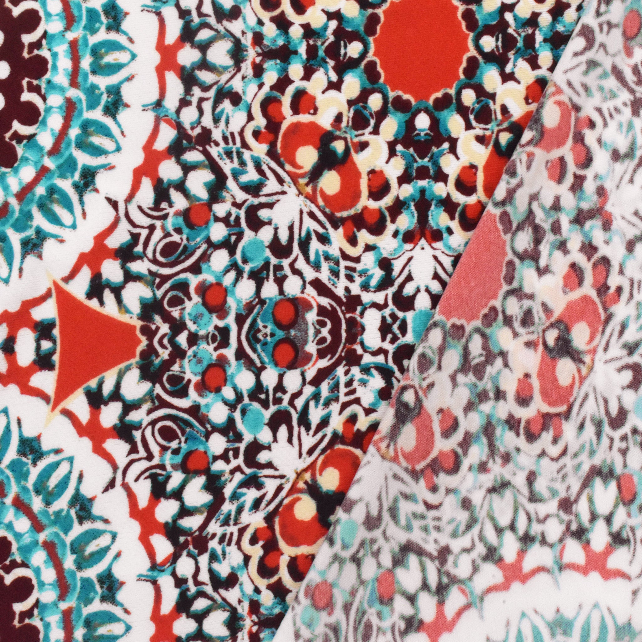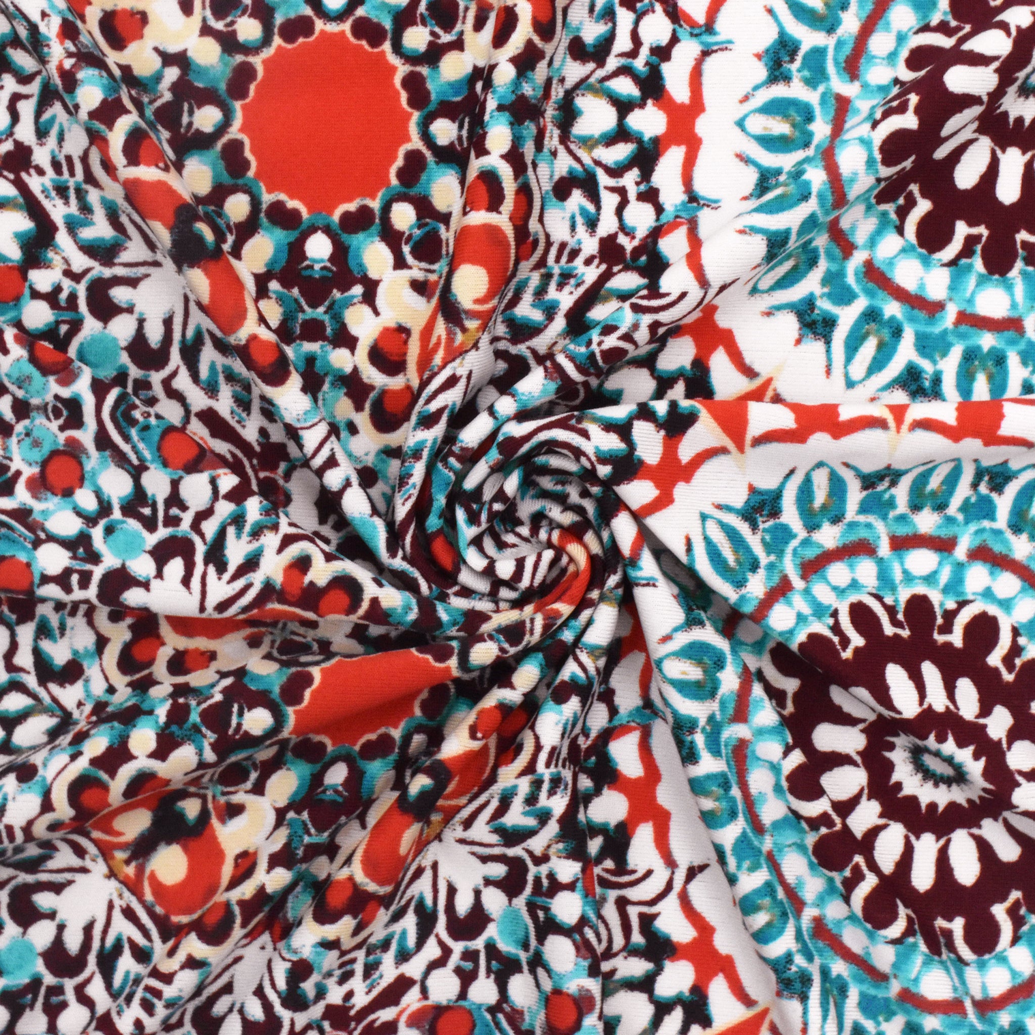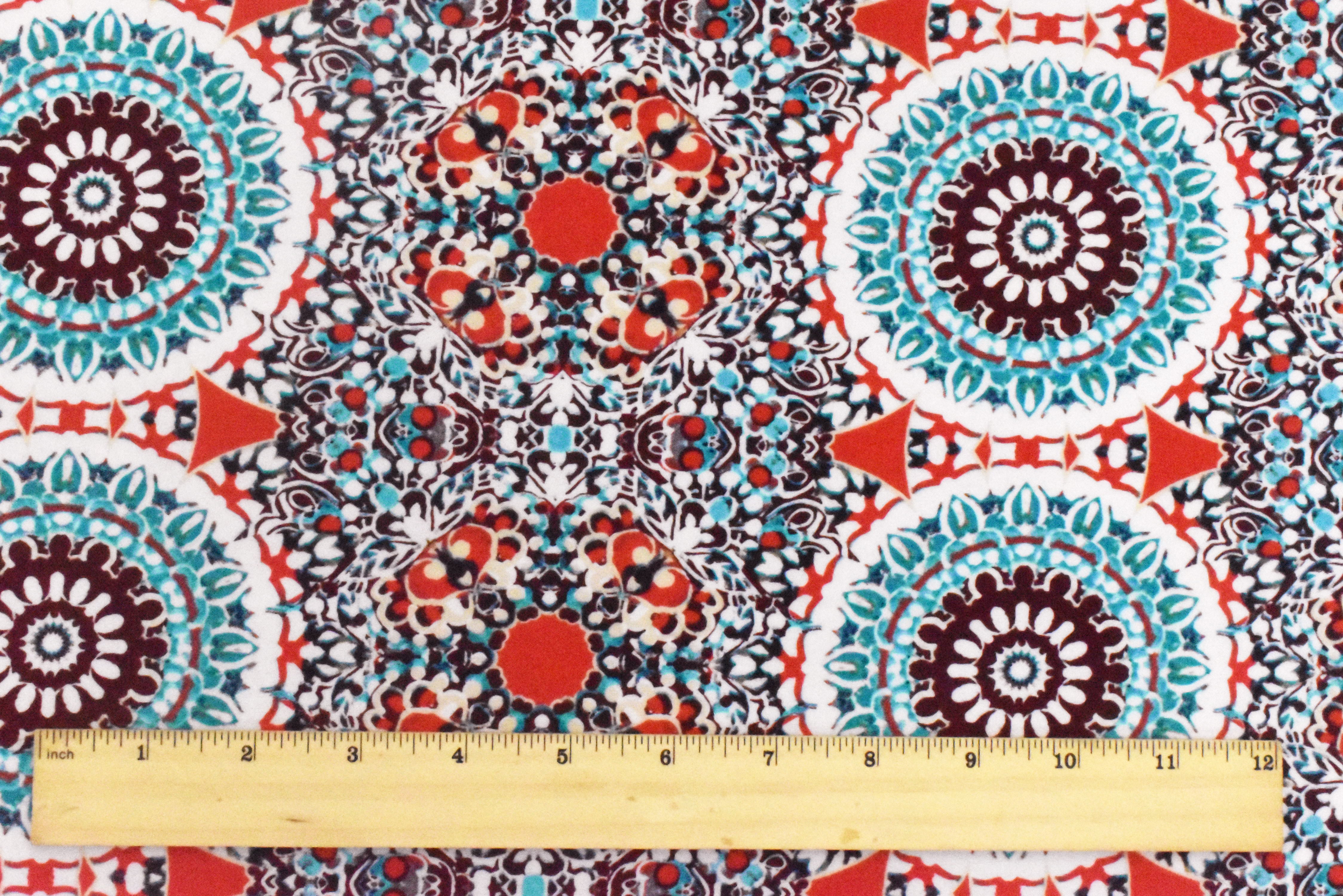2 1/4 YD PC-Basic White-Red-Multi Medallion Printed Stretch Activewear Knit Fabric