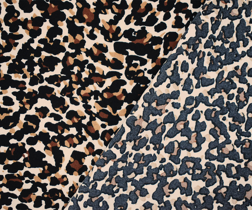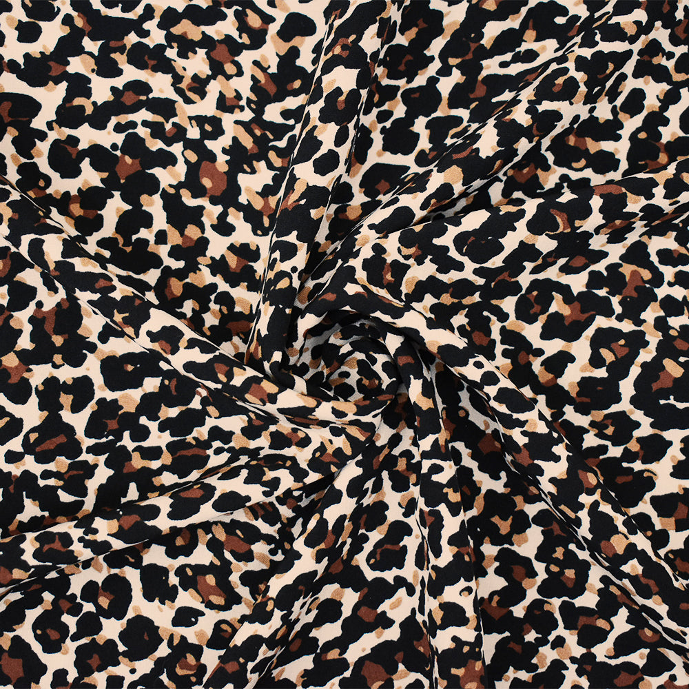 2 YD PC-Black-Multi Polyester Abstract Leopard Printed Stretch Spandex Woven Fabric
