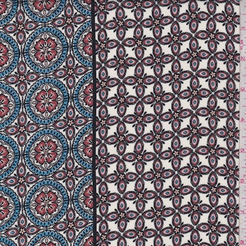 2 YD PC-Ivory/Rust/Blue Medallion Crepe Fabric