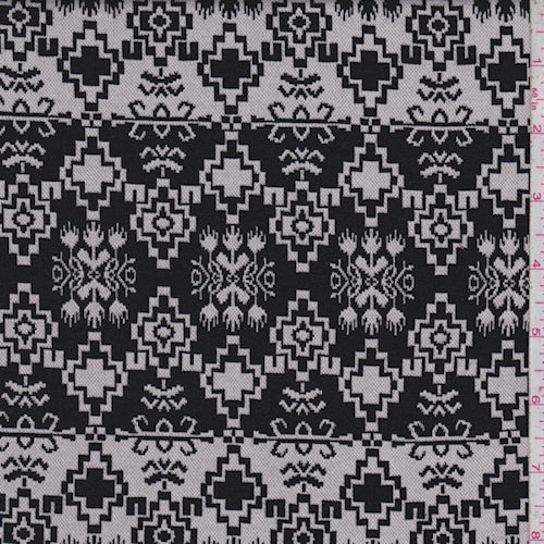 2 YD PC-White/Black Aztec Stripe Jacquard Double Knit Fabric