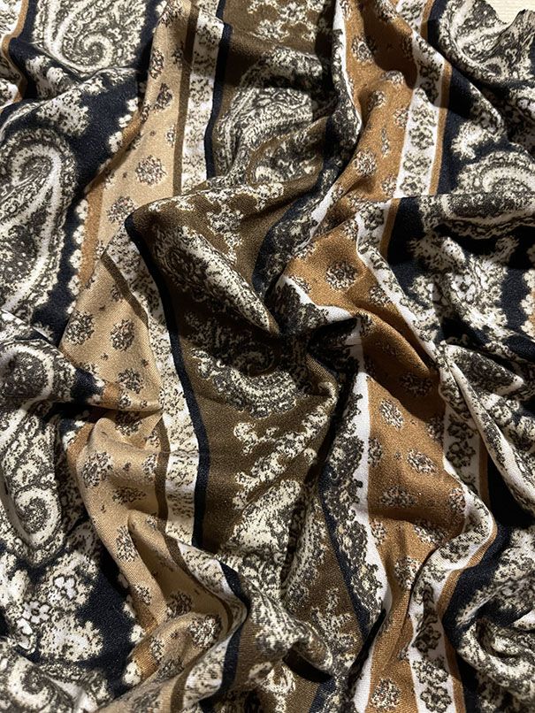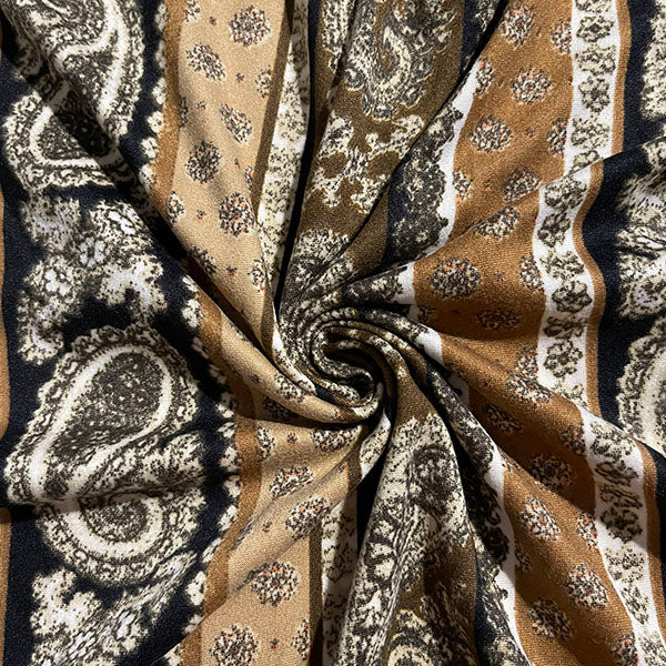 3 1/4 YD PC-Tan Paisley Stripe Print Double Brushed Knit Fabric