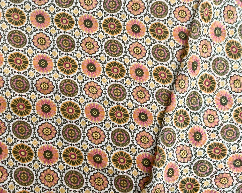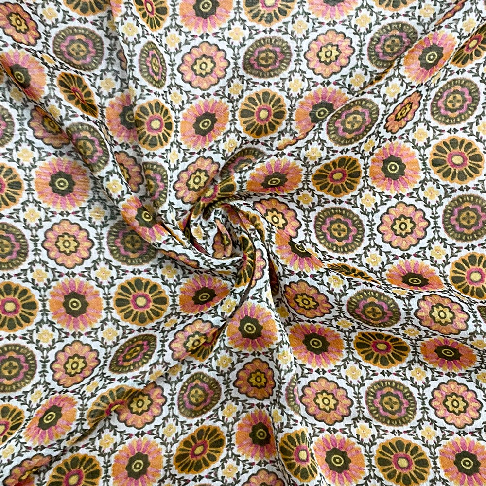 4 YD PC-Orange-Green-Multi Poly Floral Printed Crinkle Yoryu Chiffon Woven Fabric