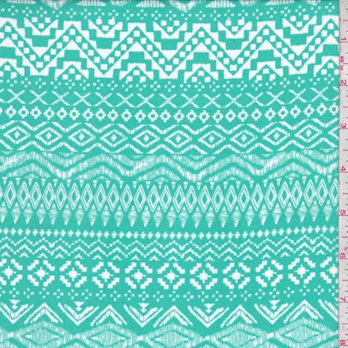 1 1/2 YD PC-Aqua Green/White Tribal Stripe Challis Fabric
