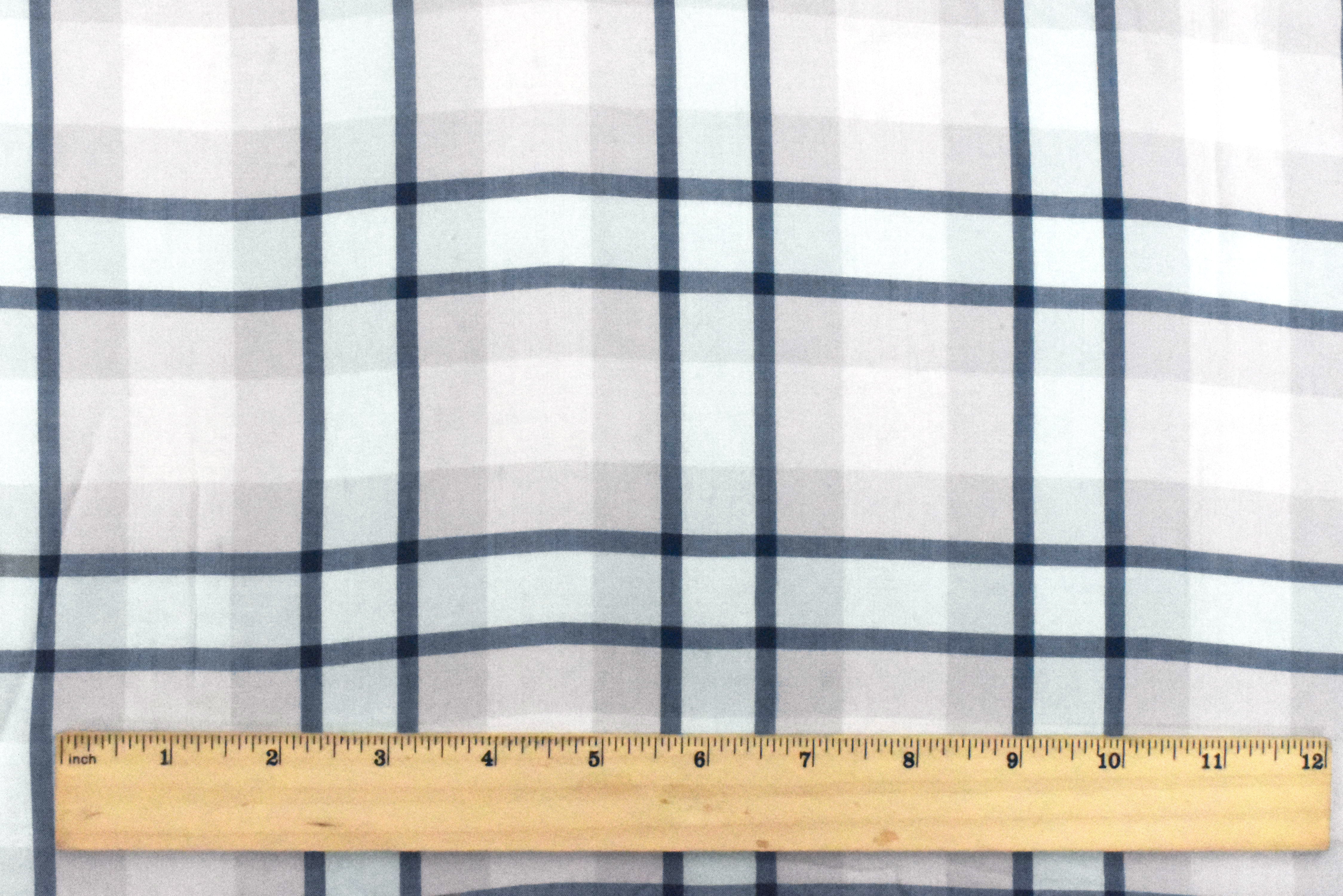 1 1/2 YD PC-Powder Blue-White-Multi Plaid Rayon Lawn Woven Fabric
