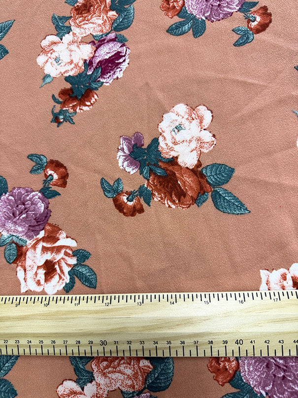 1 1/2 YD PC-Rose Multi Floral Scuba Crepe Stretch Knit Fabric