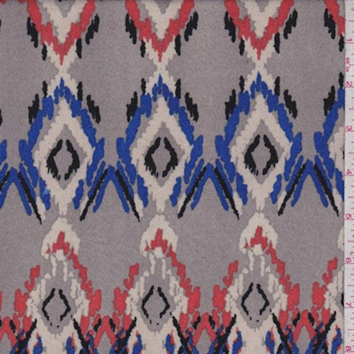 1 1/4 YD PC-Grey Multi Flamestitch Diamond Double Brushed Jersey Knit Fabric